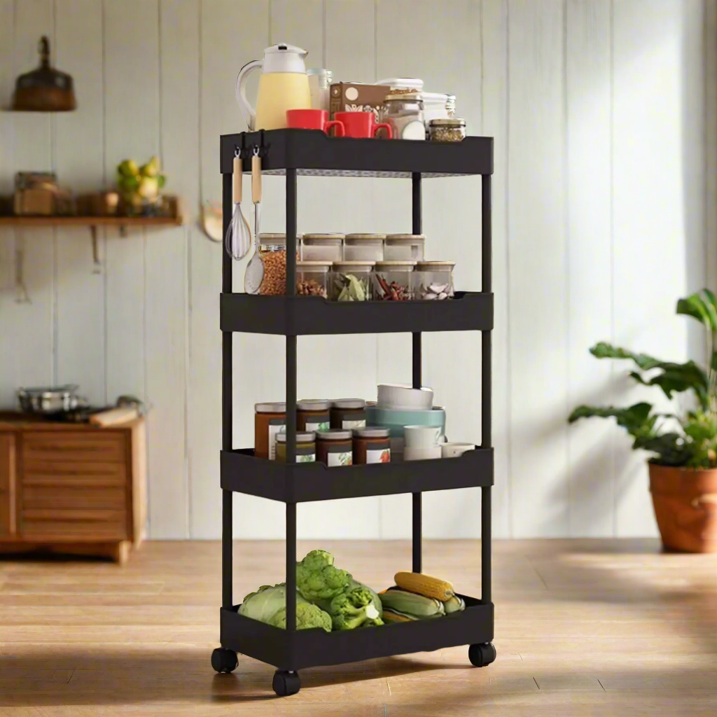 Med en minimalistisk design och smidiga hjul rör sig denna mobila vagn enkelt från rum till rum och erbjuder bekväm åtkomst till dina nödvändigheter varhelst du behöver dem. Oavsett om du organiserar kryddor, toalettartiklar, hantverksmaterial eller rengöringsprodukter, är denna 3-lagers nyttovagn ditt verktyg för smart, stilren lagring.