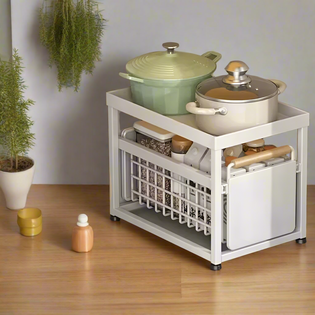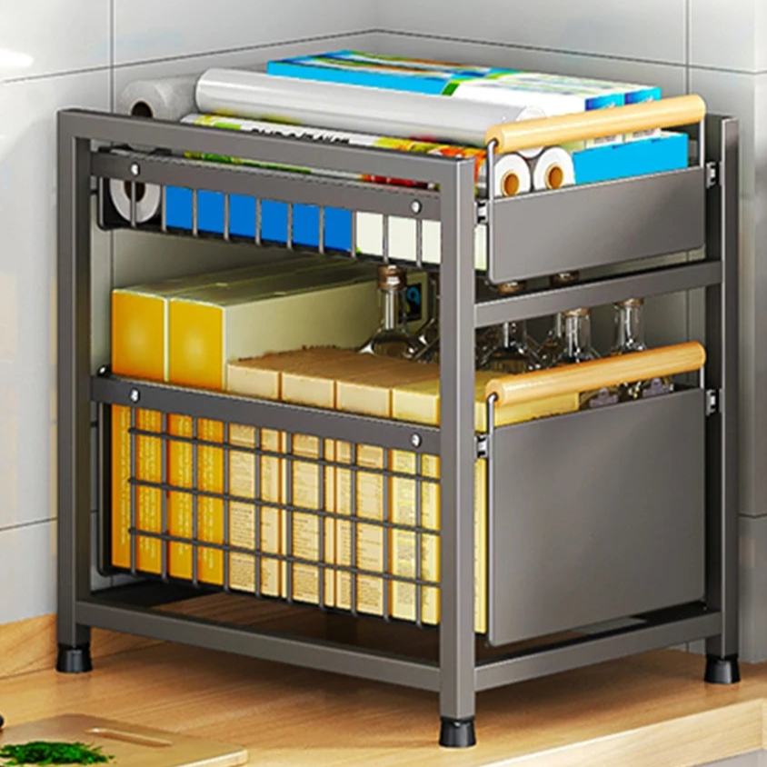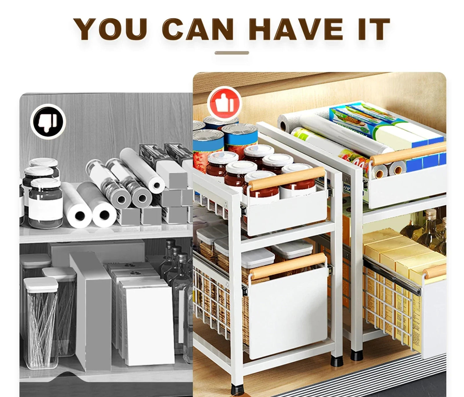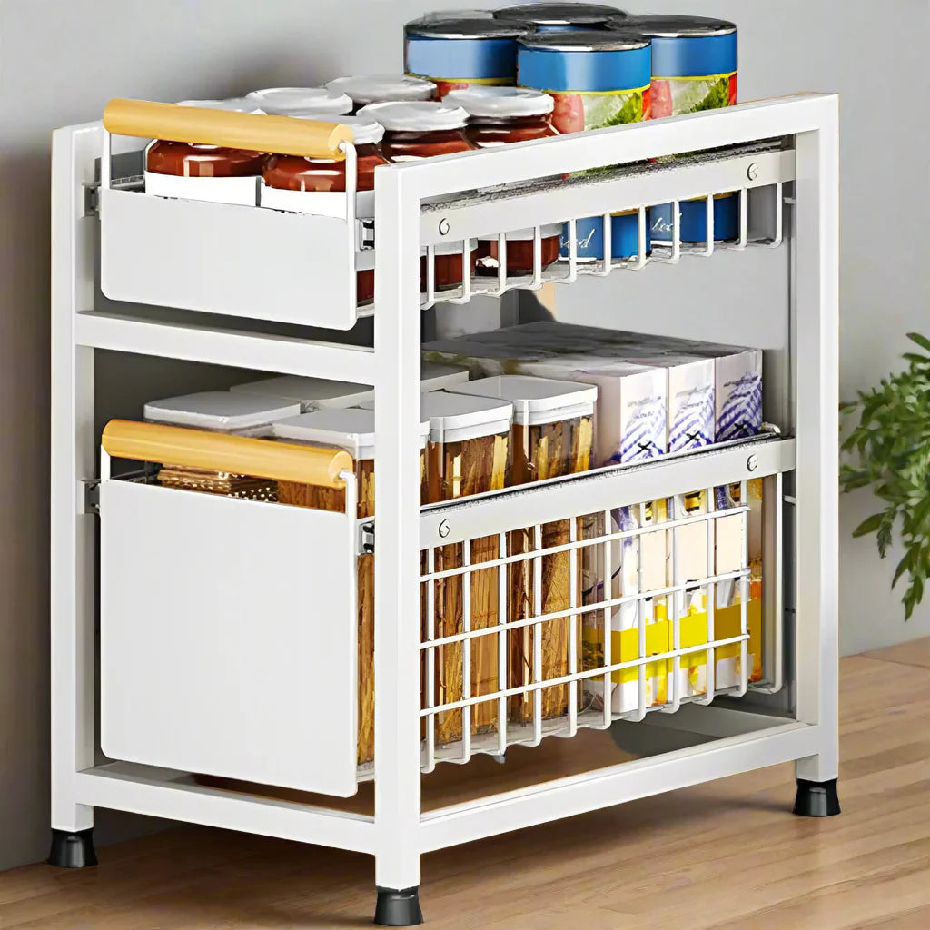 Transformera din kjøkkens oppbevaring med 2-nivå kjøkkenskap uttrekkbar oppbevaringshylla—en slank och effektiv lösning som är utformad för att eliminera skräpet i skåpen och maximera det användbara utrymmet. Perfekt för att organisera kryddor, städmaterial eller skafferiartiklar, hjälper denna utdragbara hylla dig att komma åt dina nödvändigheter med lätthet.