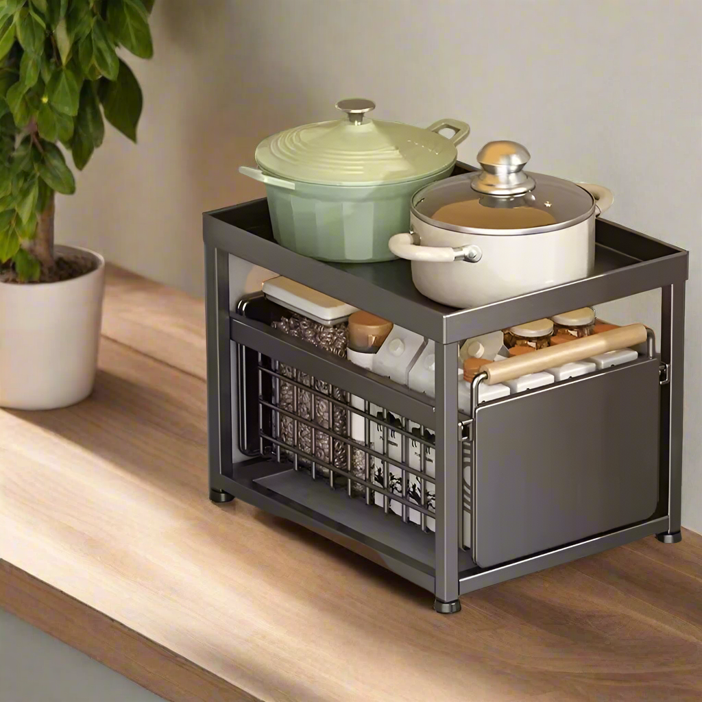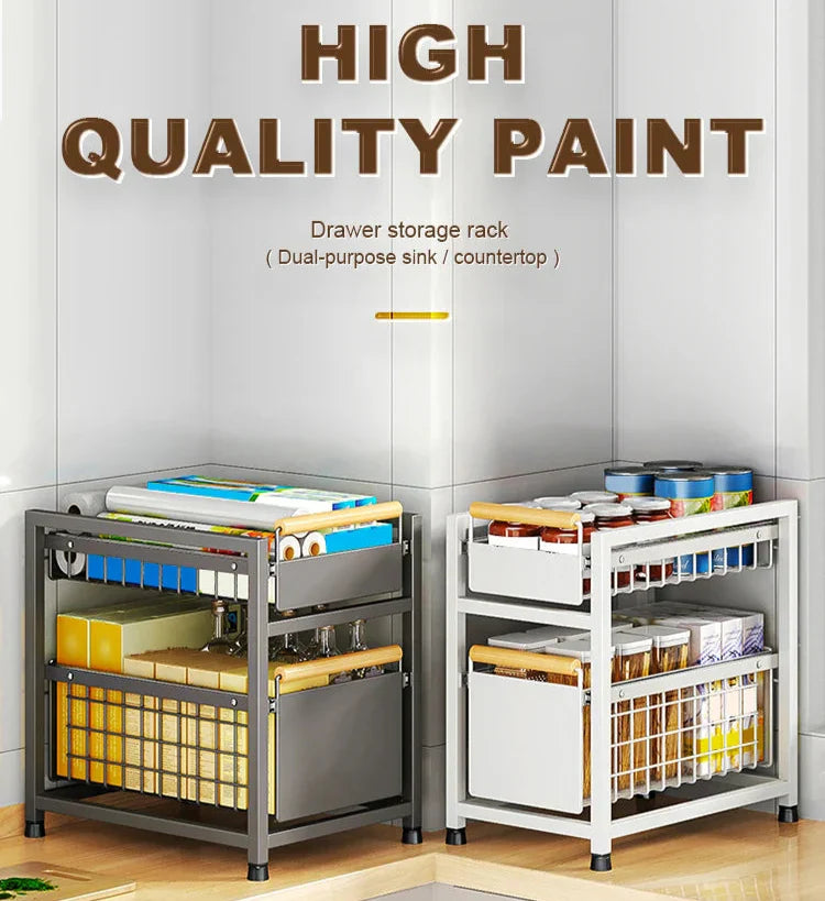 Med en smidig glidmekanism och hållbar metallkonstruktion är denna förvaringskorg byggd för att hålla och smälta in perfekt i vilken köksinredning som helst. Oavsett om den placeras under diskhon eller inne i ett skåp, tillför den funktionalitet utan att offra stil.