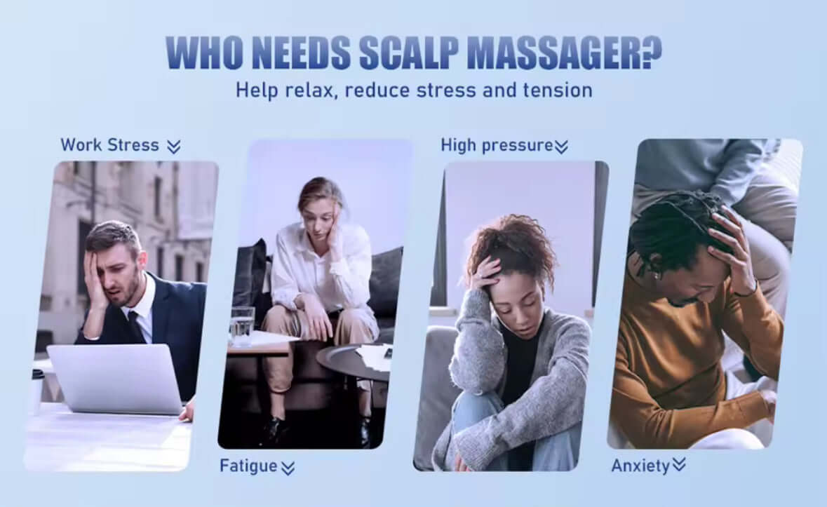 Royallure Elektrisk Huvudmassager – Migränlindring, Huvudbottenstimulator, Trådbunden & USB-ström