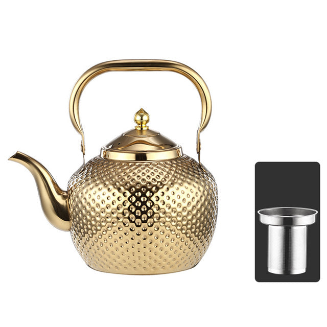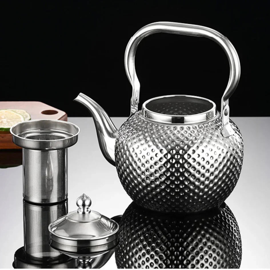- Paketet innehåller: 1 vattenkokare i rostfritt stål med hammarlack och tesil