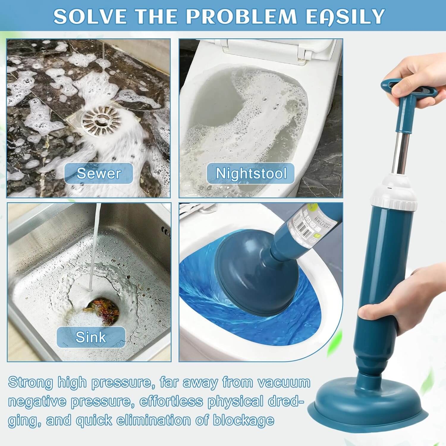 Upplev den ultimata lösningen för envisa stopp med vår högtryckssilikon toalettplunger. Designad för effektivitet, har denna plunger en unik sugkopp som sitter säkert i olika toalettöppningar och säkerställer en tät försegling för maximal sugkraft. Säg adjö till frustrerande blockeringar och hej till ett renare, mer funktionellt badrum. Det teleskopiska handtaget gör att du kan skapa super sug, vilket gör det enklare än någonsin att ta itu med även de tuffaste stopparna med självförtroende. Tillverkad med hållbarhet i åtanke, är denna kraftiga toalettplunger utrustad med ett stålförstärkt handtag och nylonborst, som säkerställer att den klarar tidens test. Dess innovativa design förhindrar att plungern flippar tillbaka, vilket ger en problemfri upplevelse. Oavsett om du har att göra med ett badrum eller ett köksdike, är detta mångsidiga verktyg din bästa vän för alla behov av rensning av avlopp.- Universell Passform: Denna plunger är designad för att passa de flesta toalettpåsar, vilket gör den till en mångsidig tillskott till dina rengöringsartiklar.