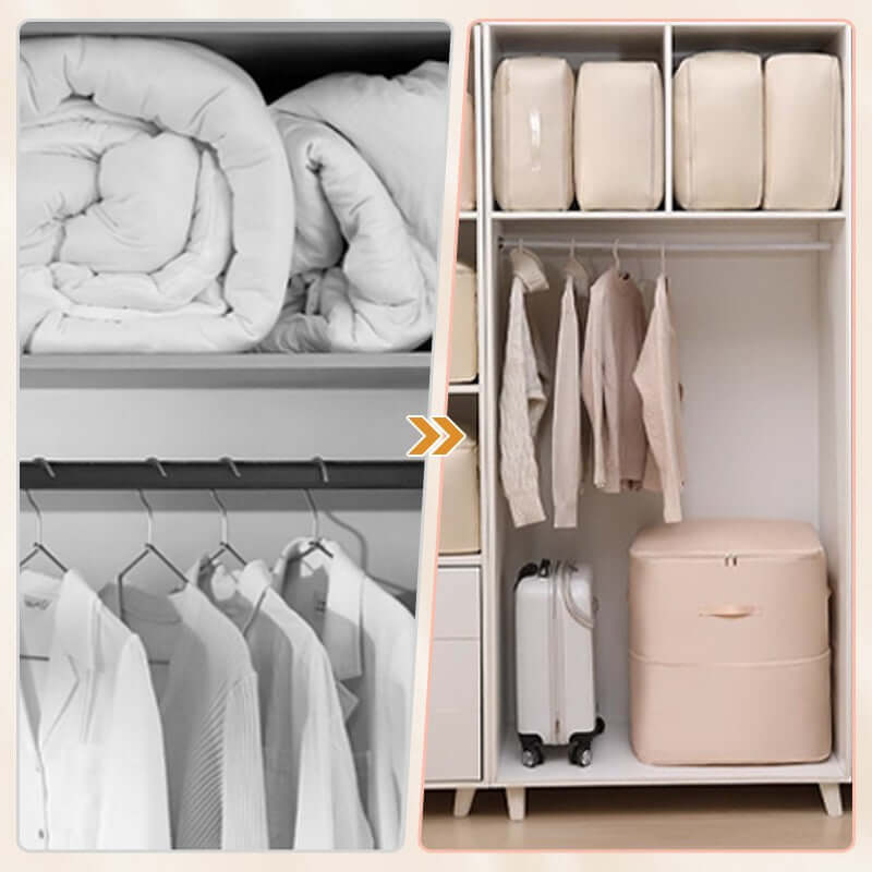 - Platsbesparande design: Komprimera dina tillhörigheter för att spara 40% mer utrymme, idealiskt för små garderober och begränsade lagringsutrymmen.