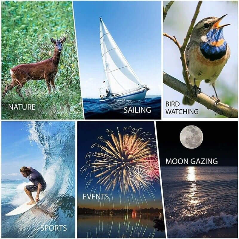 Upplev världen som aldrig förr med Royallure Portable HD Monocular Telescope, som har en imponerande 80X förstoring som får varje detalj att framträda i skarpt fokus. Med avancerad BAK-4 prisma-teknologi och ett helt flerbelagt linsystem, förbättrar denna monokulär ljusöverföring och ljusstyrka, vilket säkerställer att du njuter av klara, levande bilder även på avstånd. Oavsett om du vandrar, fågelskådar eller deltar i utomhusevenemang, är detta mångsidiga teleskop designat för friluftsentusiaster som kräver kvalitet och prestanda. Designad för bekvämlighet och hållbarhet, är vår monokulär utrustad med en 50mm objektivlins och en 20mm okular, vilket ger en vidvinkel som fångar fantastiska scener och vilda djur. Med en anmärkningsvärd överföringshastighet på 99,5% presterar den utmärkt under svag belysning, vilket gör den idealisk för nattsyn. Den ergonomiska, vattentåliga designen säkerställer skydd mot fukt och damm, så att du kan fokusera på ditt äventyr utan oro.