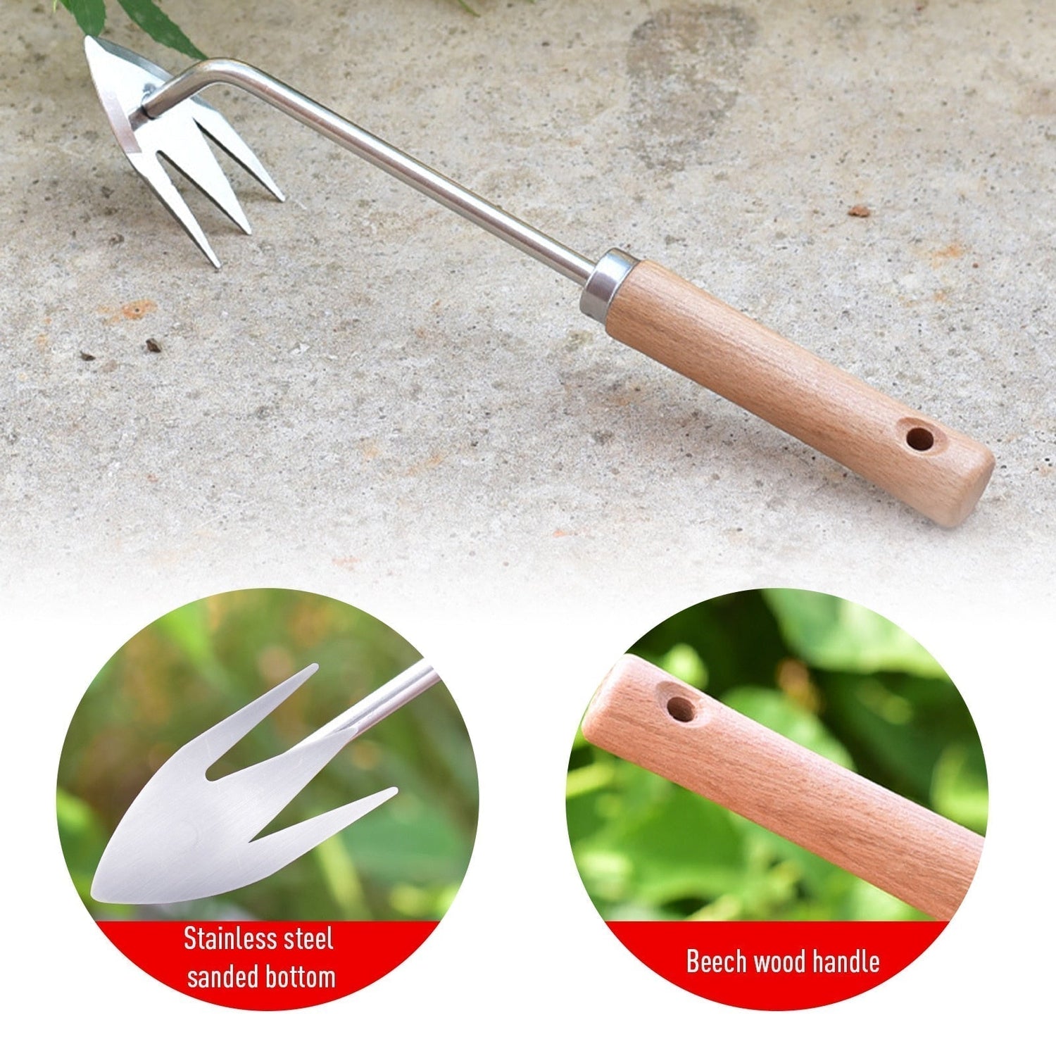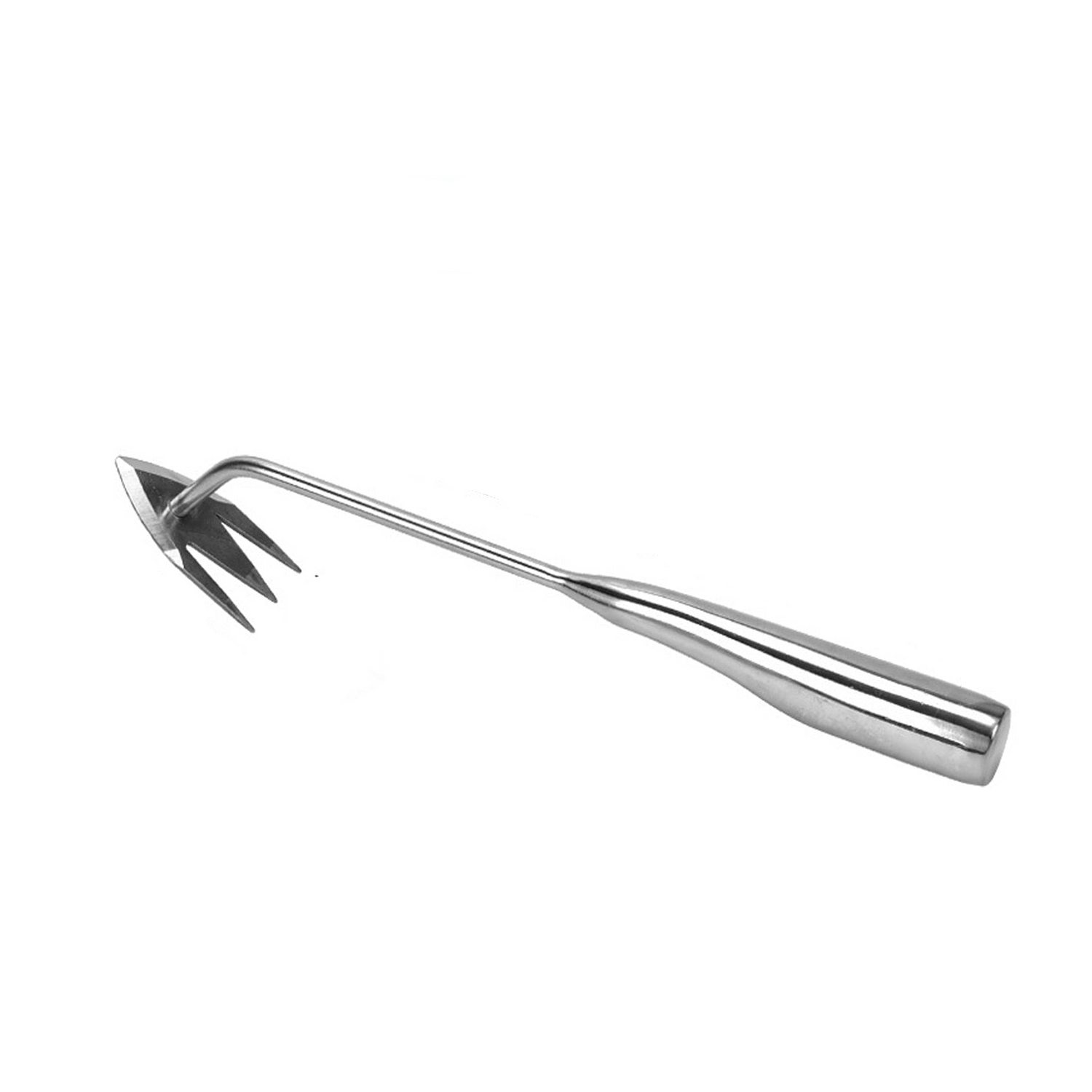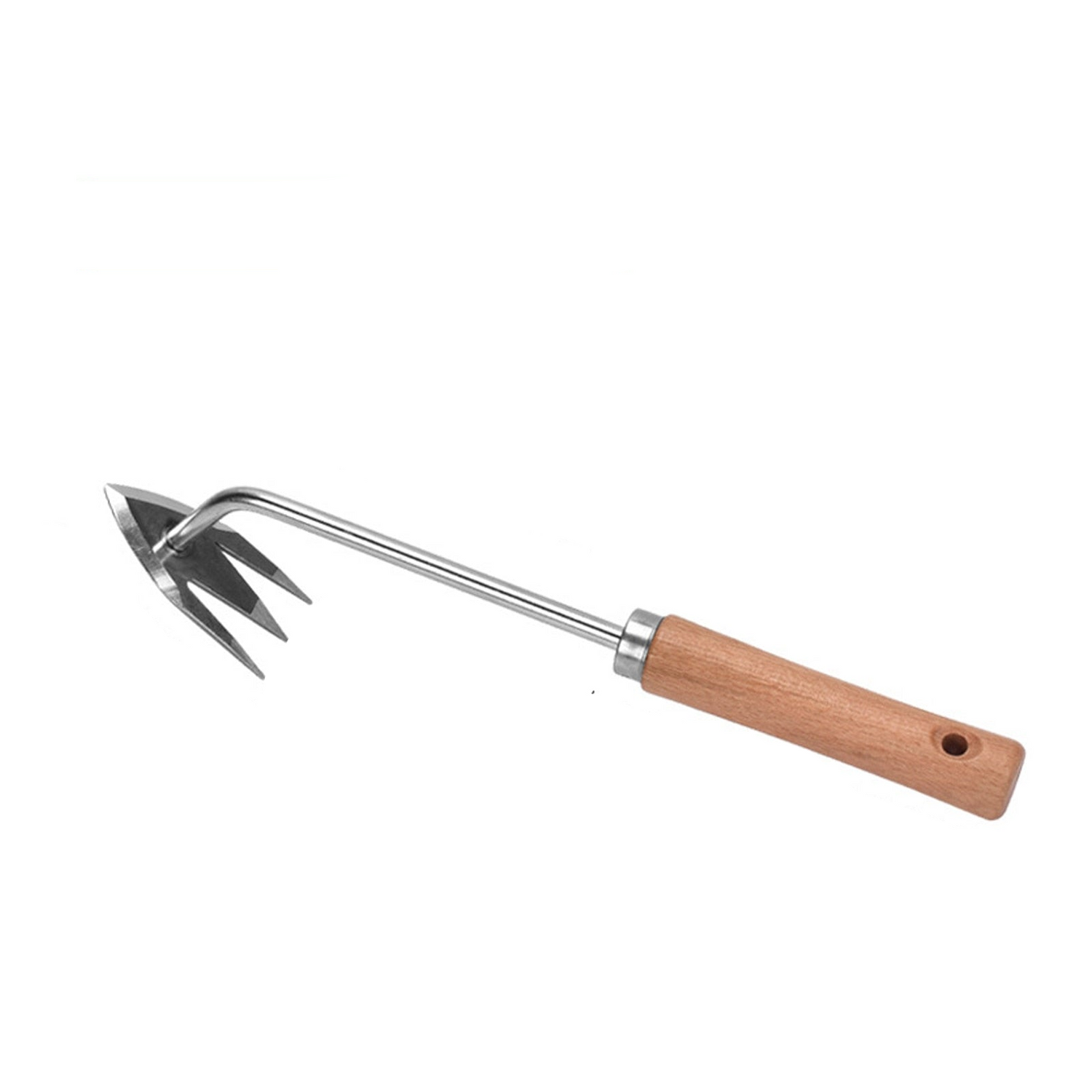 Med sin hävstångsbas och starka V-formade gaffeltopp är det enkelt att använda vårt verktyg. Placera helt enkelt den böjda metallbasen på marken och gräv runt rötterna för att dra och ta bort ogräs. Den vassa gaffeltoppen är praktisk för att gräva, bända och ta bort rötter, stjälkar och löv.