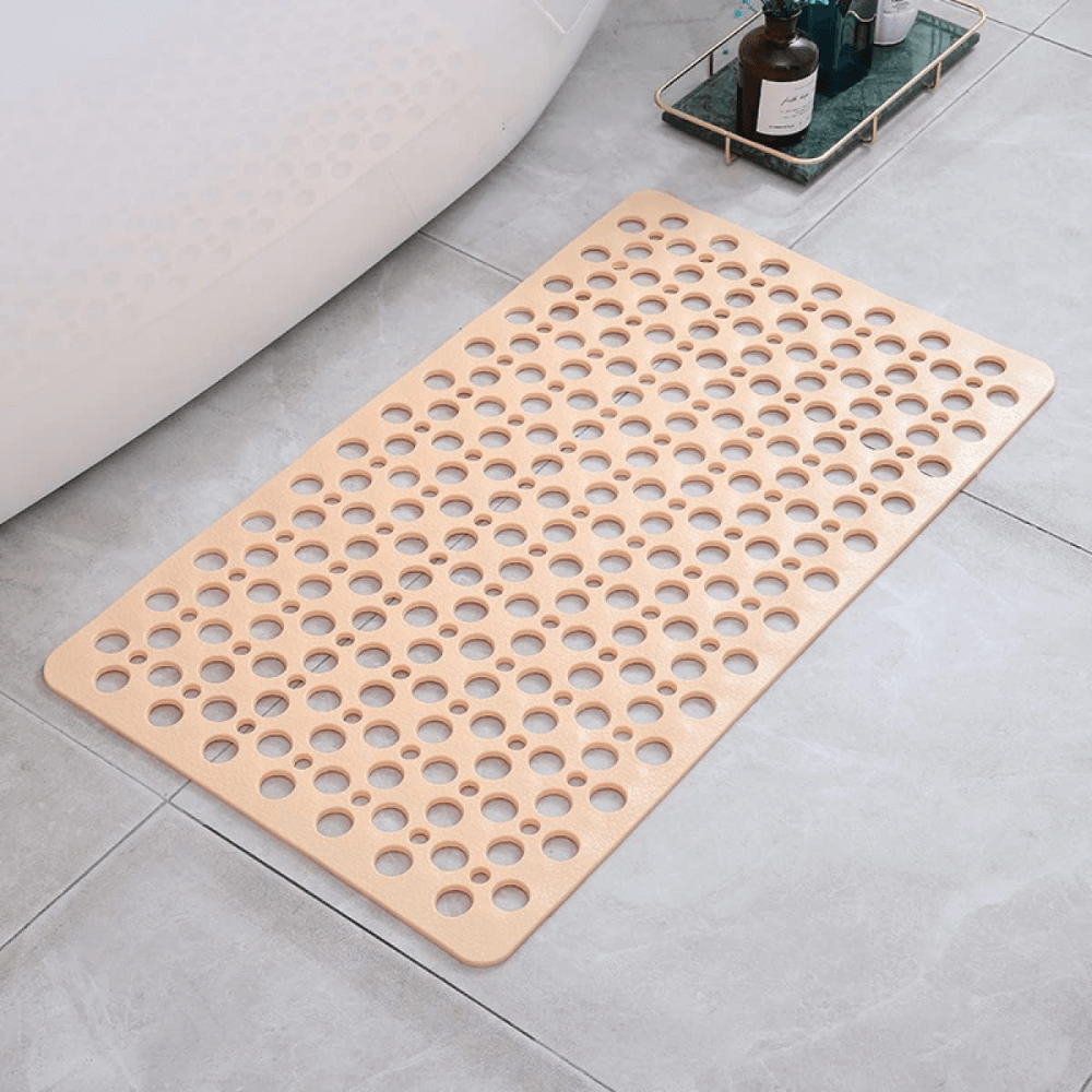 Kliv in i duschen med självförtroende med Royallure Antiskid Duschmatta. Denna välutformade matta kombinerar säkerhet och stil, med en säker greppyta och strategiskt placerade dräneringshål som säkerställer att dina fötter förblir stadiga samtidigt som ditt badrum hålls torrt. Med måtten 15,7 x 27,5 tum passar den perfekt i de flesta standardduschar, medan dess mjuka texturerade yta erbjuder komfort under fötterna, vilket gör varje dusch till en härlig upplevelse. Den rena, neutrala designen integreras sömlöst i alla badrumsinredningar, och dess lätta konstruktion möjliggör enkel rullning, sköljning och torkning efter användning. Upplev oöverträffad säkerhet med denna matta, designad för att ta itu med vanliga badrumsrisker. De starka sugkopparna håller mattan på plats på hala, kaklade ytor, vilket ger dig ett säkert fotfäste. Dräneringshålen minskar effektivt fuktuppbyggnad, förhindrar mögel och säkerställer en ren miljö. Med sitt flexibla material är denna matta inte bara lätt att rengöra och förvara utan också enkel att omplacera vid behov.- Starka Sugkoppar: Håller mattan säkert på plats på hala ytor för ökad säkerhet.