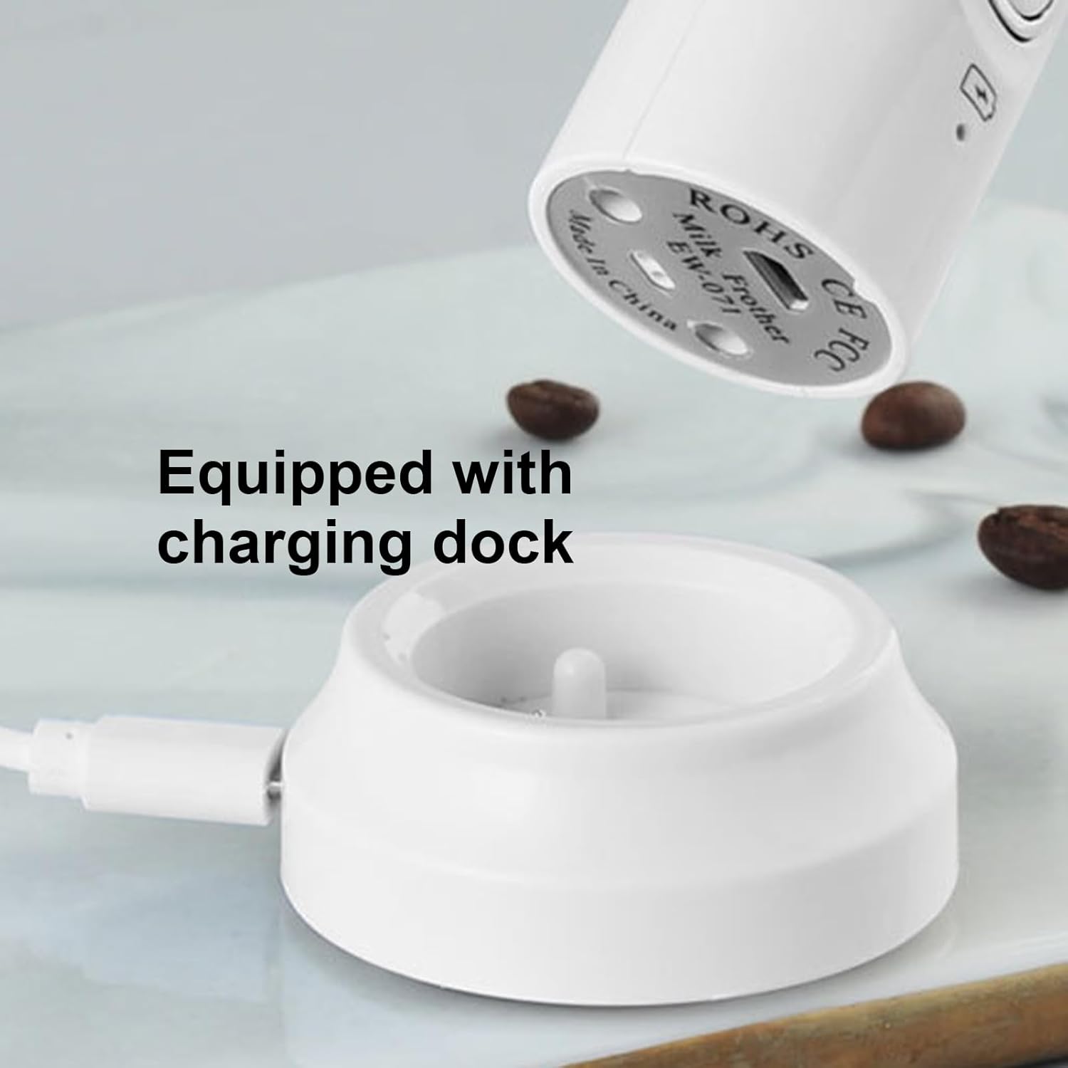 - USB Uppladdningsbar: Det inbyggda 1200 mAh-batteriet möjliggör bekväm laddning, vilket säkerställer att du kan skumma din mjölk när som helst, var som helst.