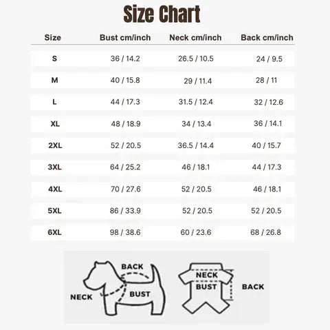 - Tillgänglig för Alla Raser: Storlekarna varierar från S till 6XL, vilket rymmer hundar av alla raser och storlekar.