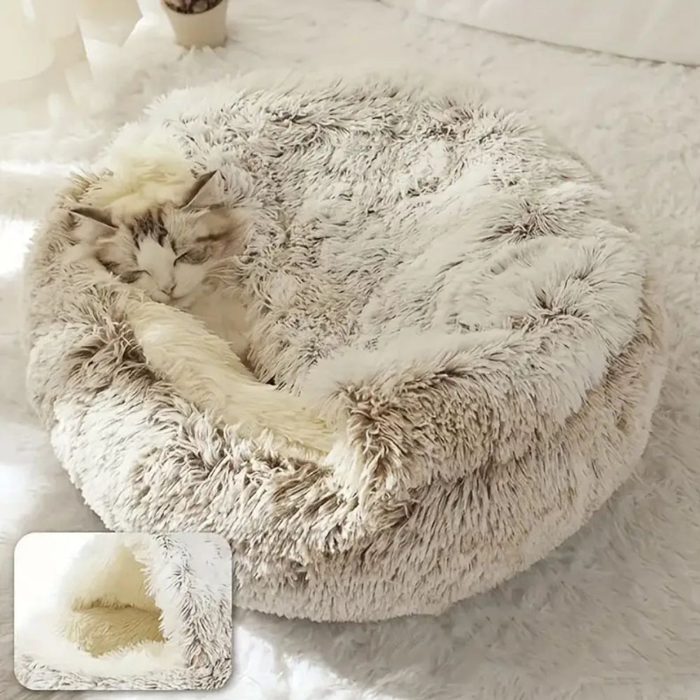 - Huvad husdjursbädd med en mjuk, bo-liknande design