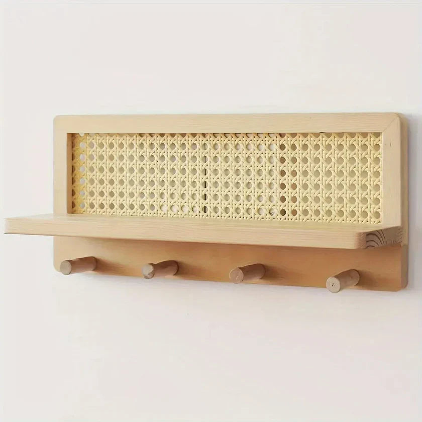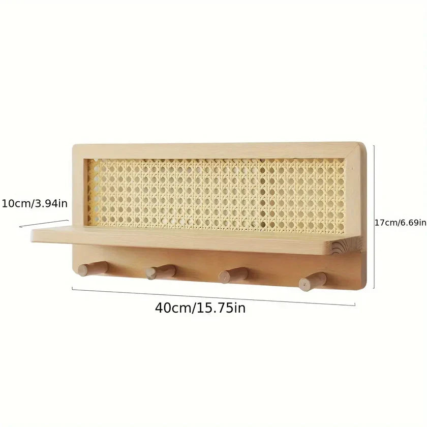 Hylla ger gott om plats för dekorativa föremål, medan de fyra hållbara krokarna ger utrymme för att hänga viktiga saker som nycklar och kappor. Den är enkel att montera och tillför både funktionalitet och charm till din inredning.