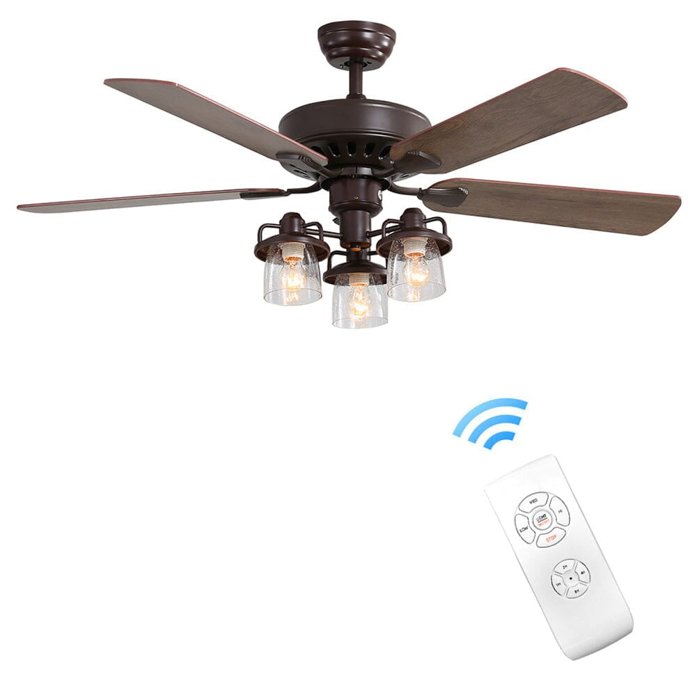 Rustik 52-tums trä takfläkt med fjärrkontroll och 3 LED-lampor