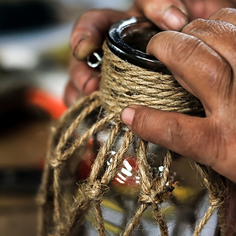 Rustik Glasvas med Jute Snöre – Dekorativ och Tidlös för Din Inredning