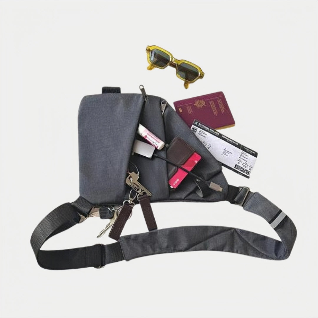 SafeTrav™ har en modern och säker design som håller dina tillhörigheter skyddade från ficktjuvar, vilket säkerställer sinnesfrid vart dina äventyr tar dig. Med sin rymliga kapacitet kan du enkelt packa allt du behöver, oavsett om du flyger runt i världen, ger dig ut på en shoppingrunda eller utforskar nya sevärdheter och ljud.