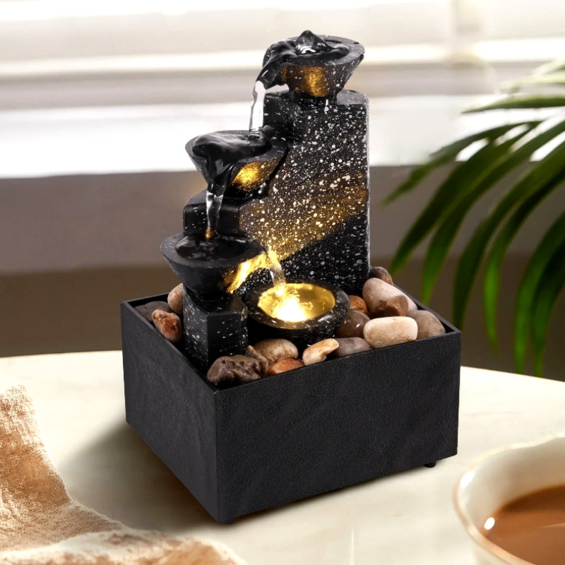 SerenityFalls bringar fred och produktivitet till ditt rum med sin graciösa, kaskaderande vattendesign. Perfekt för små vardagsrum eller kontor, det främjar en lugnande atmosfär som hjälper dig att hålla fokus. Låt det lugnande ljudet av rinnande vatten höja din omgivning och inspirera din kreativitet.