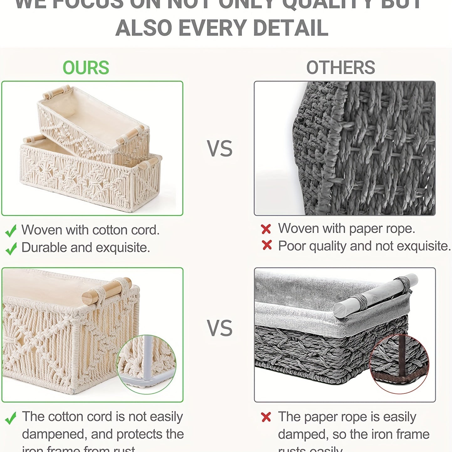 Denna uppsättning av två handgjorda makraméförvaringskorgar ger en touch av bohemisk charm till vilket utrymme som helst i ditt hem. Med ett vackert vävt mönster och trähantag är dessa korgar perfekt för att förvara föremål i badrummet, vardagsrummet eller sovrummet. Oavsett om du letar efter ett sätt att hålla ditt utrymme prydligt eller att uppgradera din inredning, erbjuder dessa stiliga korgar både praktisk förvaring och visuell tilltalande.