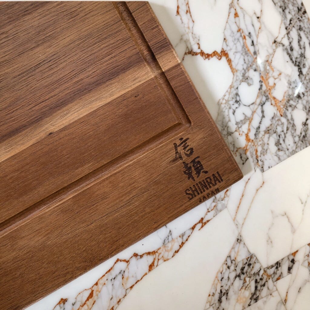 Shinrai Japan Skärbräda – Premium Akaciaträ, Saftränna & Handtag – Perfekt för Kök & BBQs