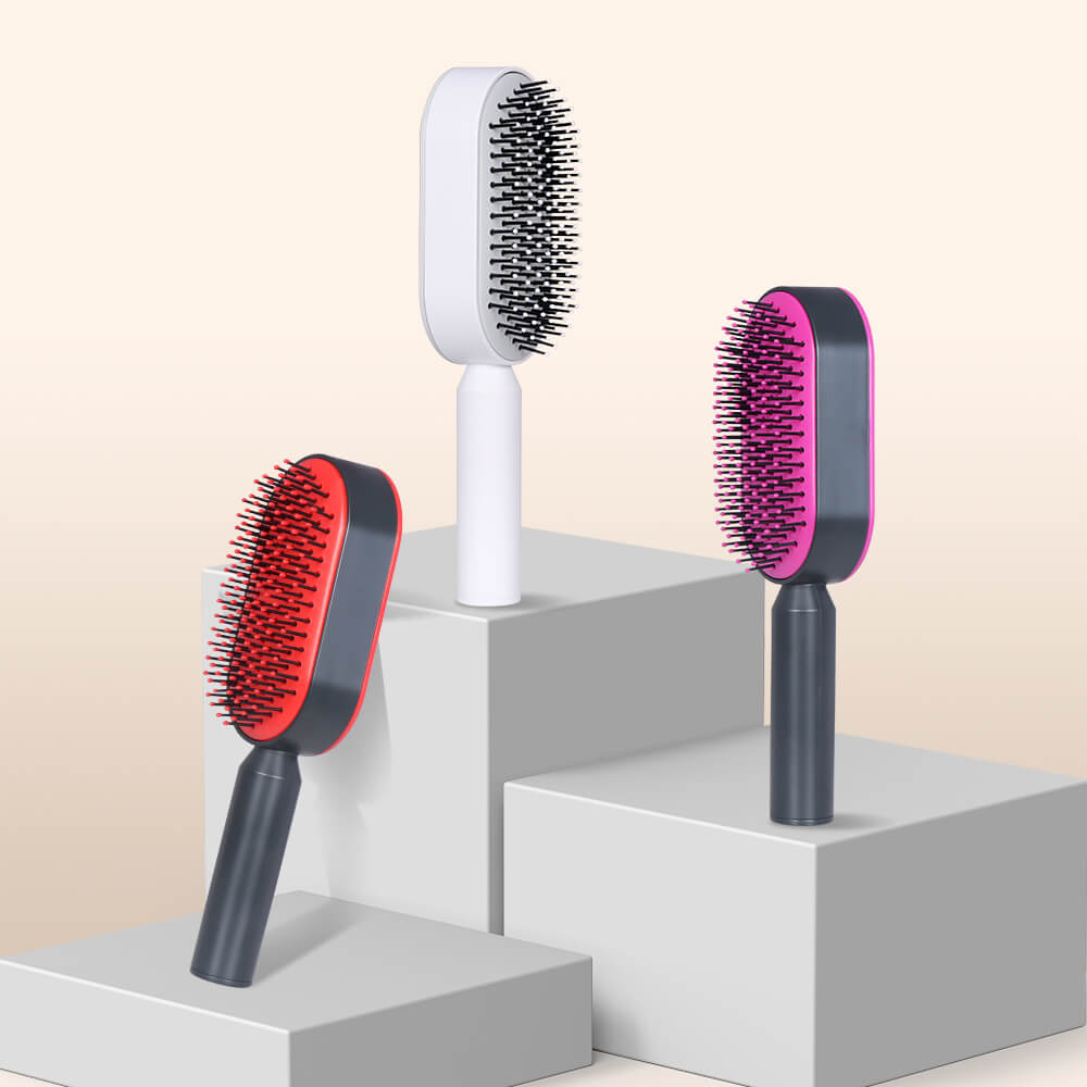 ✅ För En Smärtfri Användning - Med dess jämnt fördelade sfäriska tänder så reder och slätar denna borste ut håret på ett effektivt sätt. Den har även en design som gör att med ett tryck så blir rengöringen av borsten en enkel match.