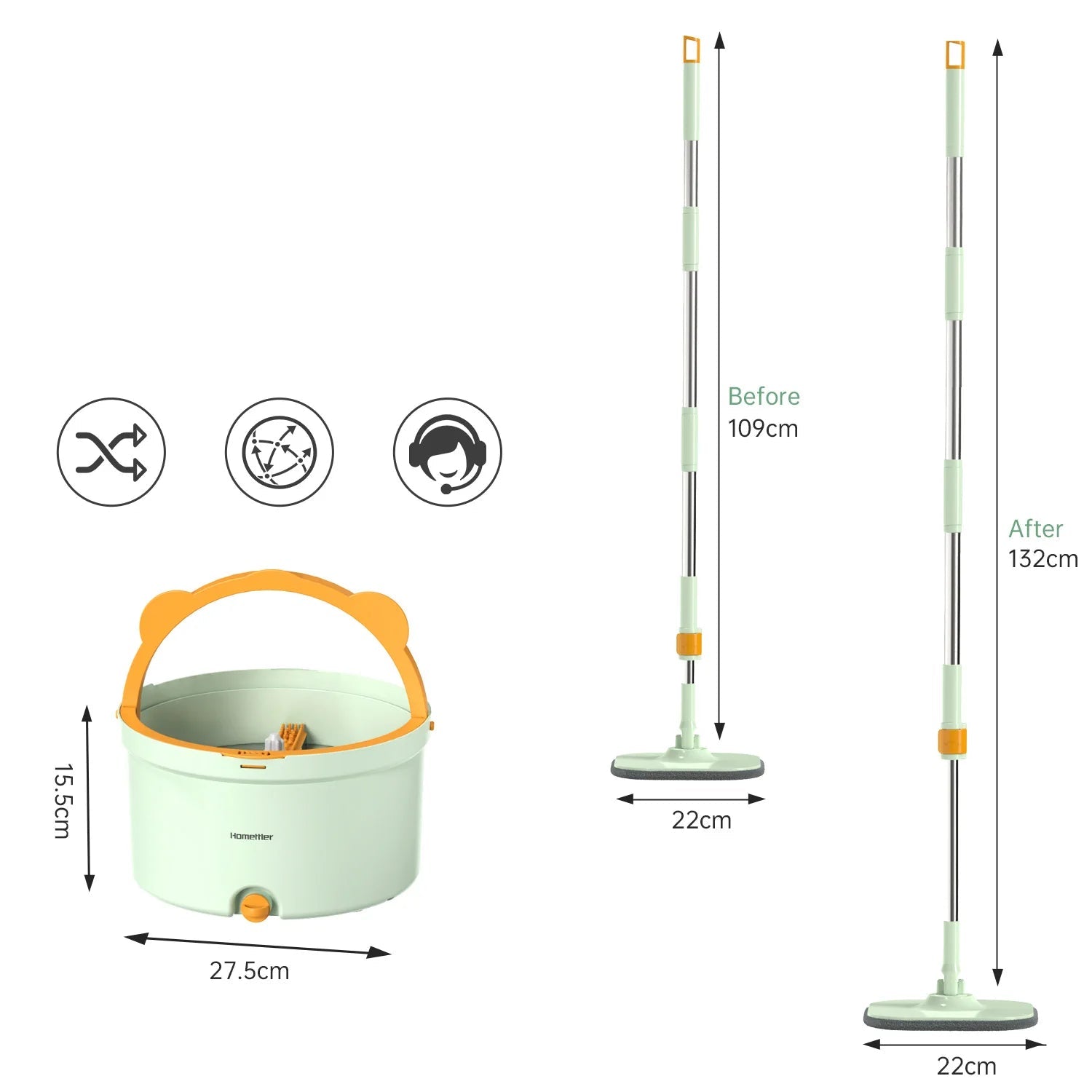 - 🌀 Rotationsfunktion – Enkel vridning av moppens huvud för självrengöring.