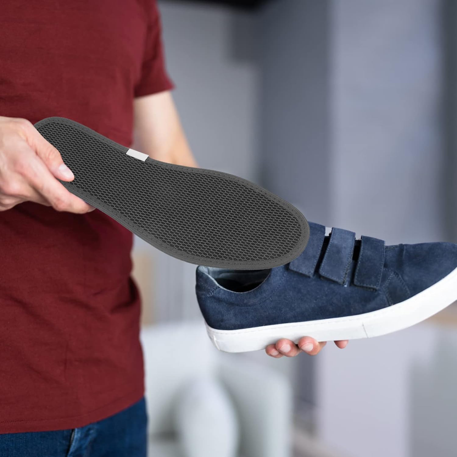 Dessa högkvalitativa innersulor är designade för att ge komfort och fräschhet. Tillverkade av bambufiber och aktivt kol, absorberar de effektivt svett och motverkar dålig lukt. Den ventilerande strukturen låter fötterna andas, medan den stötdämpande designen ger extra stöd vid långa dagar på jobbet, under träning eller i vardagen.
