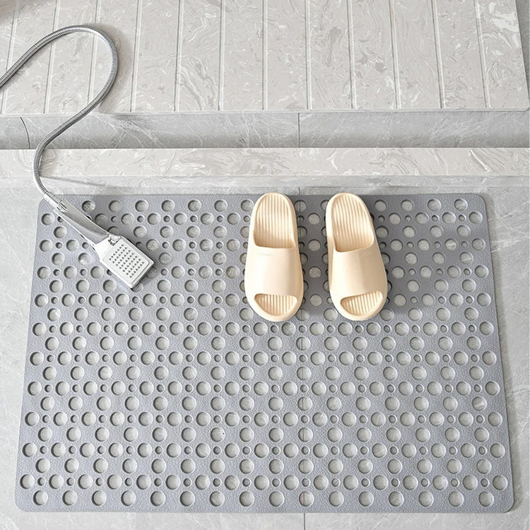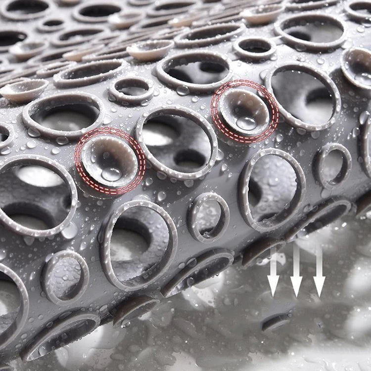 Strategiskt placerade hål låter vattnet rinna av snabbt, vilket förhindrar pölar och hjälper mattan att torka snabbare efter varje användning.