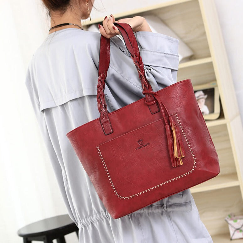 Axellängden är bekväm att bära och fördelar vikten jämnt, medan den långa axelremmen gör att du kan kasta den över axeln vid behov. De två flätade handtagen ger en klassisk designaspekt samtidigt som du kan hålla väskan säkert eller bara låta den hänga vid din sida. Den här kvalitetsväskan kommer säkert att hålla i många år framöver, praktisk nog för alla kvinnor.