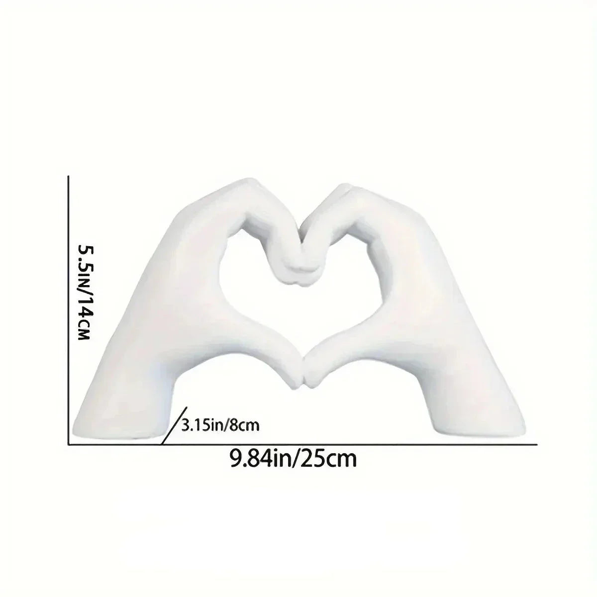 Denna skulpturala handdekoration symboliserar kärlek och samband, perfekt för att lägga till en personlig och stilfull touch till ditt hem. Den vackra formen av två händer som bildar ett hjärta gör denna dekorativa bit till en unik och meningsfull present eller ett slående inslag i ditt vardagsrum. Den största fördelen är den symboliska designen som strålar värme och kärlek i vilket utrymme som helst.