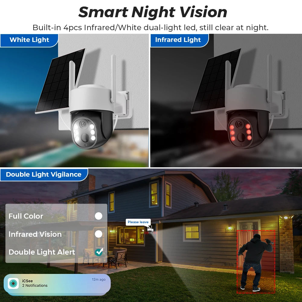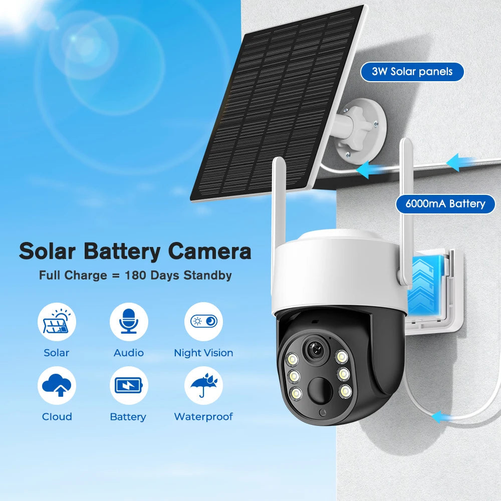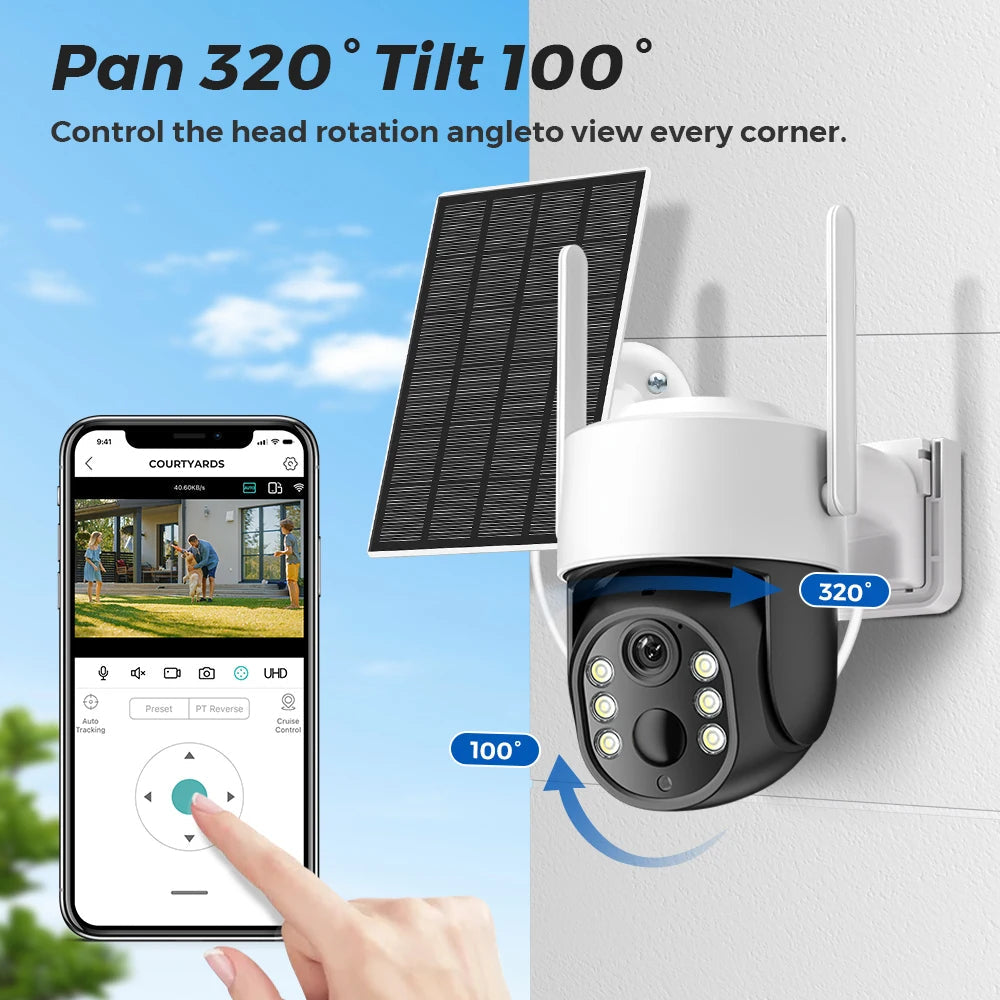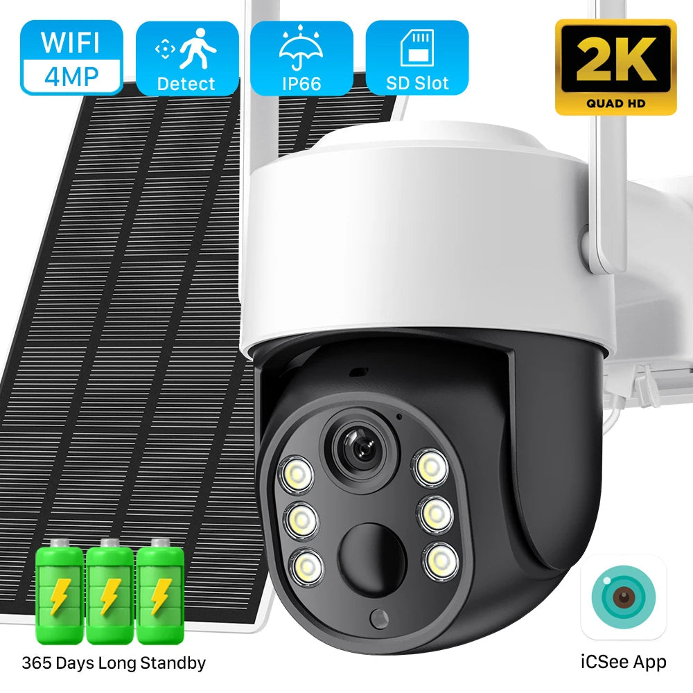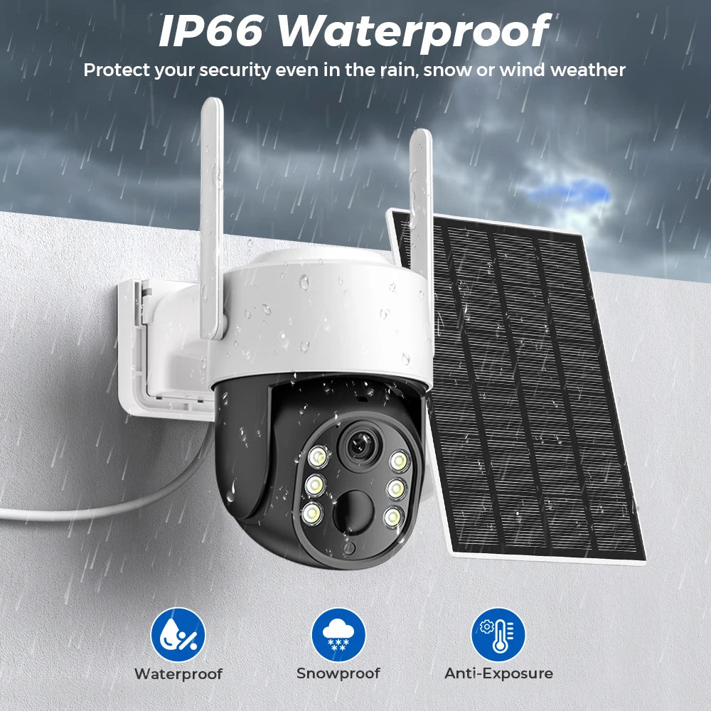 4MP WiFi Solkamera med PIR Mänsklig Detektion, Inbyggt 7800mAh uppladdningsbart batteri