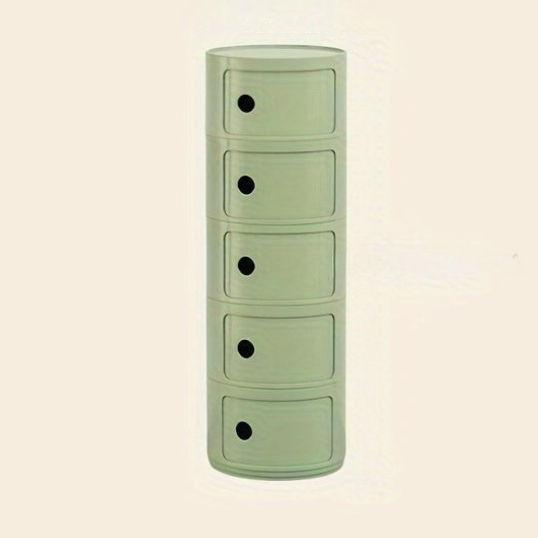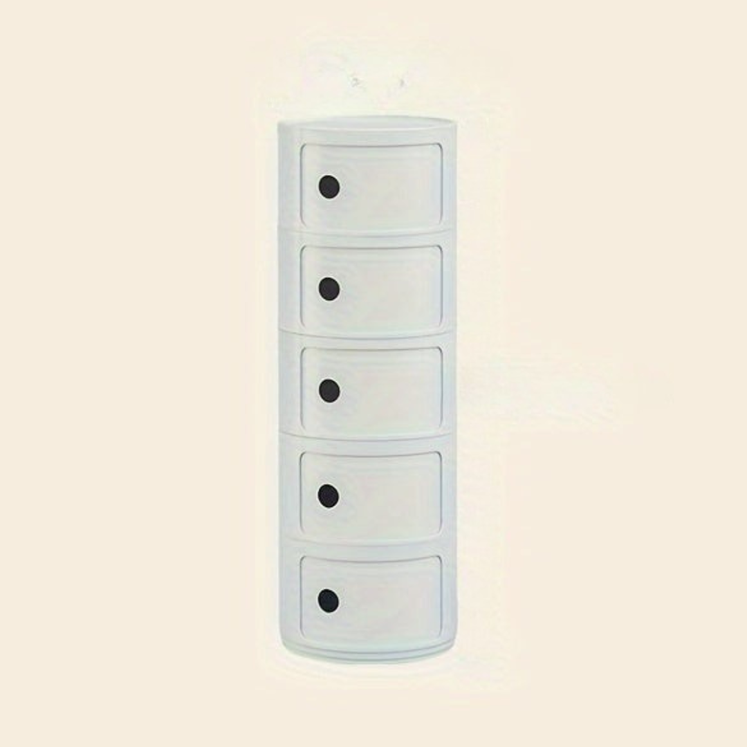 Håll ditt hem prydligt och stiligt med detta kompakta sängbord som har eleganta plastförvaringslådor. Med sin runda form och lager av sektioner är denna moderna sovrumsförvaringsenhet perfekt för att organisera dina nödvändigheter. Oavsett om det placeras i ett sovrum, vardagsrum eller hall, ger det en ren, minimalistisk look samtidigt som det hjälper dig att spara utrymme.
