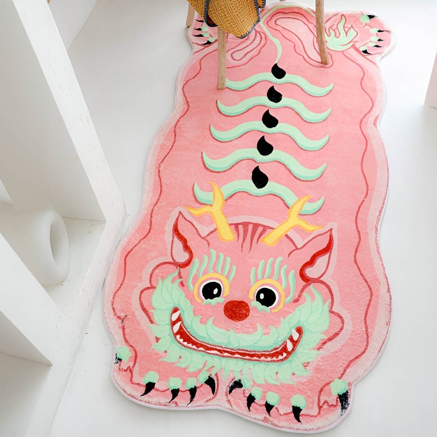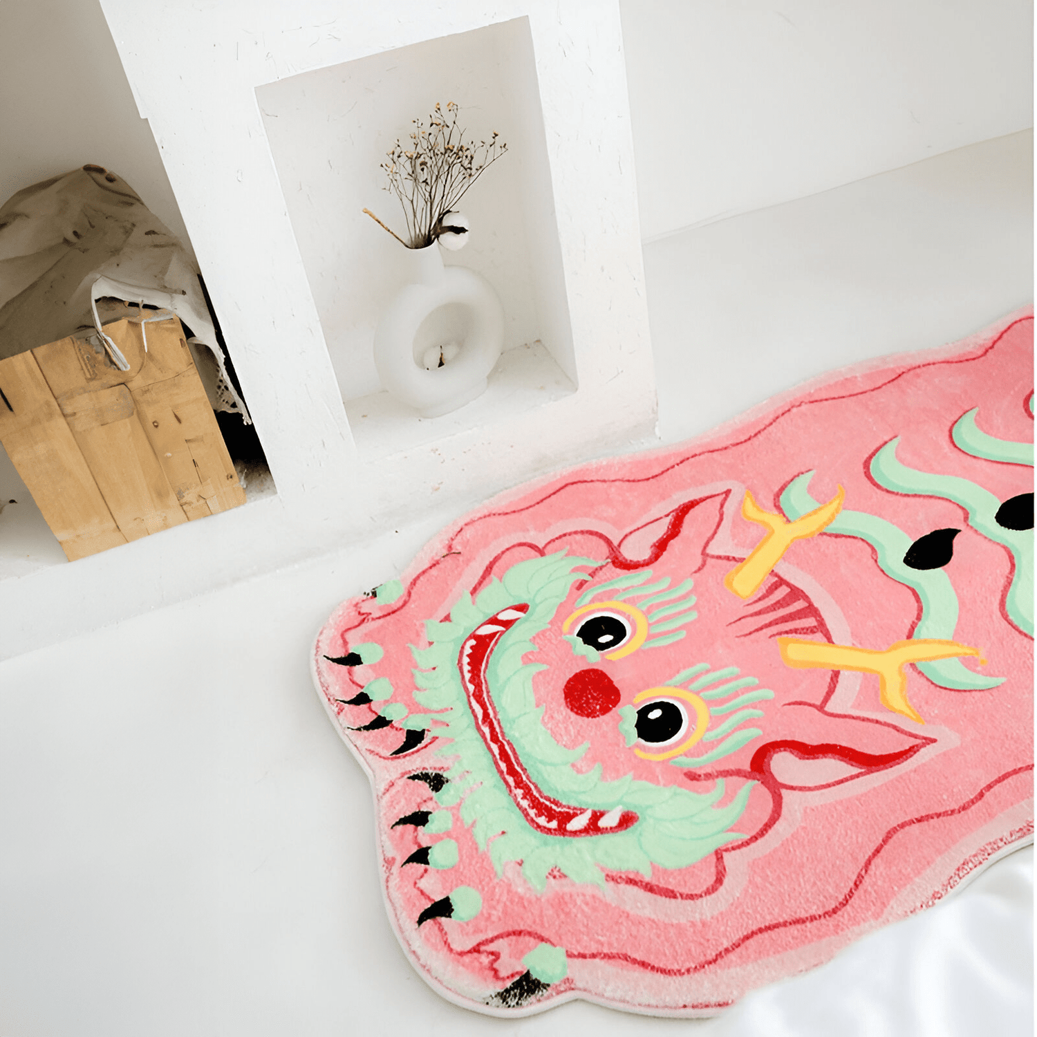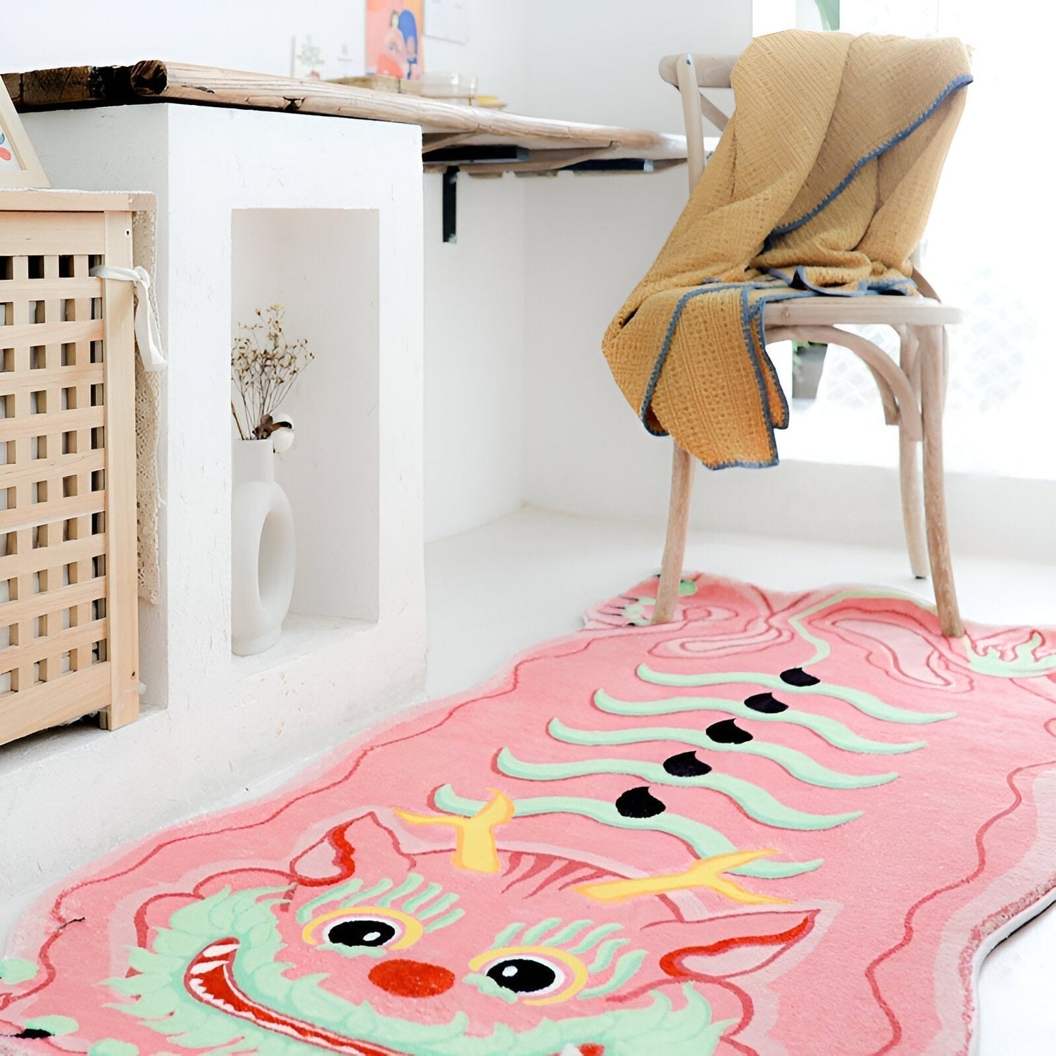 Ge ditt hem en härlig dos fantasi och komfort med SnuggleNest, den runda, mjuka mattan med en charmig och busig drakdesign. Perfekt för att skapa en unik och varm atmosfär i vardagsrum eller sovrum – du kommer garanterat att älska den!