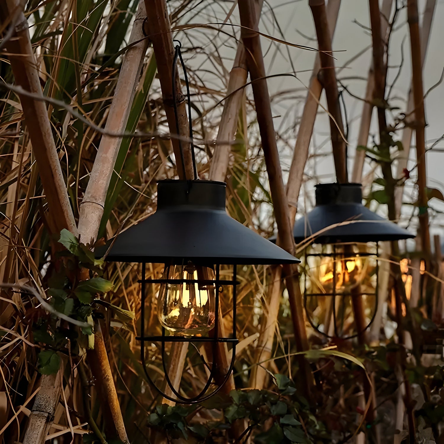 Med den robusta metallkåpan i klassisk svart och den retro-inspirerade glaslampan, lamporna tillför inte bara ljus, utan också stil till din trädgård. Med den integrerade solpanelen laddar de sig själva under dagen och lyser vid skymning i upp till 8 timmar. Lätta att hänga, stå, eller dekorera – ingen installation krävs. Perfekt för trädgårdsfester, romantiska kvällar, eller bara som en permanent utomhusdekoration.