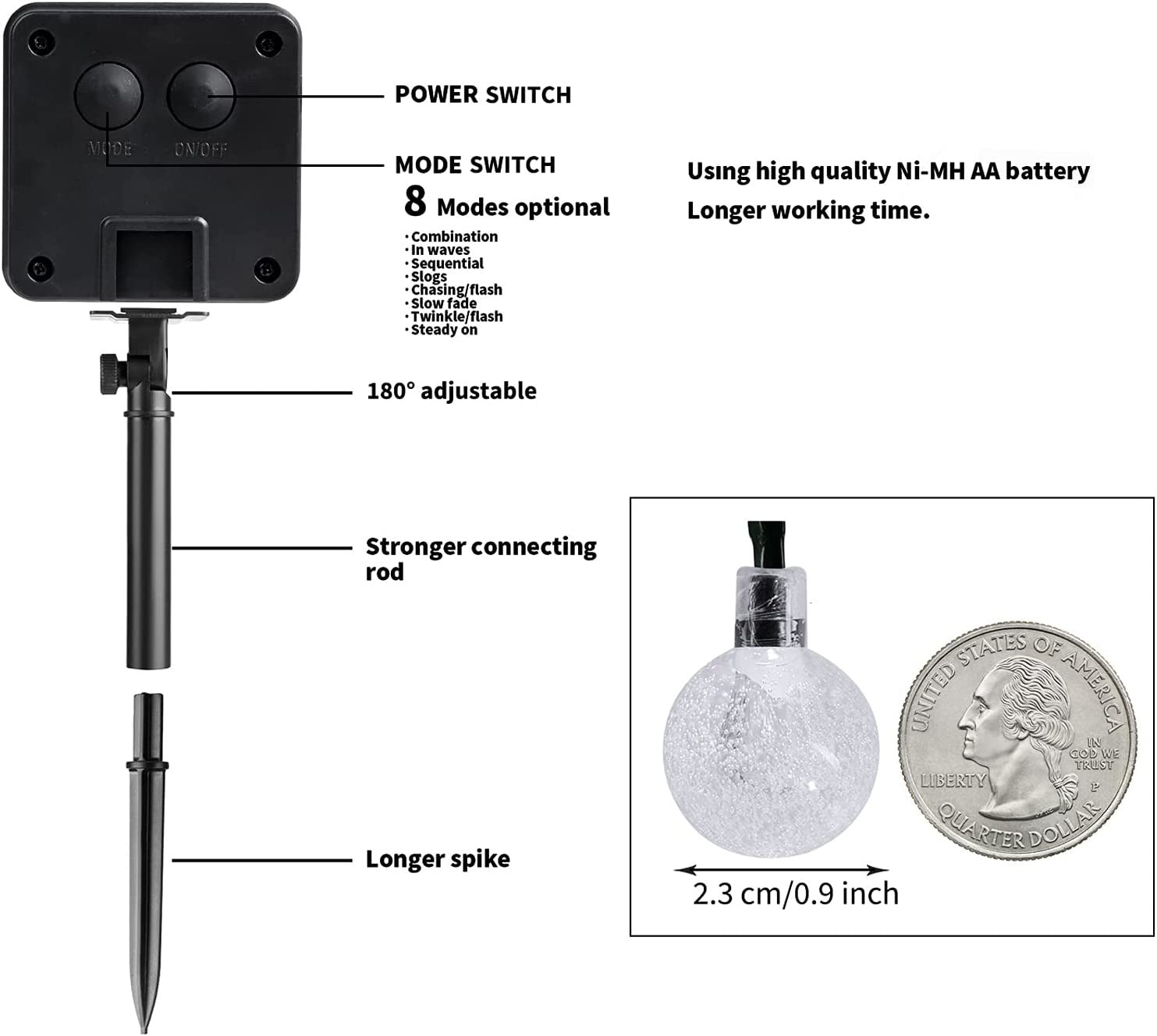 - Enkel installation & Säker: Ingen kabeldragning krävs – placer bara solpanelen i solsken och njut av vacker, säker och miljövänlig belysning på natten.