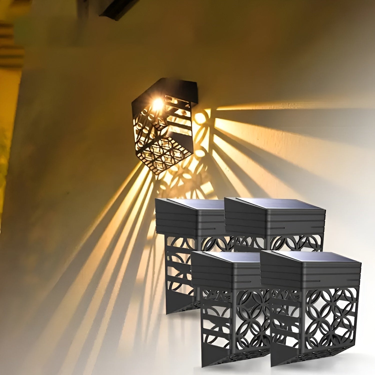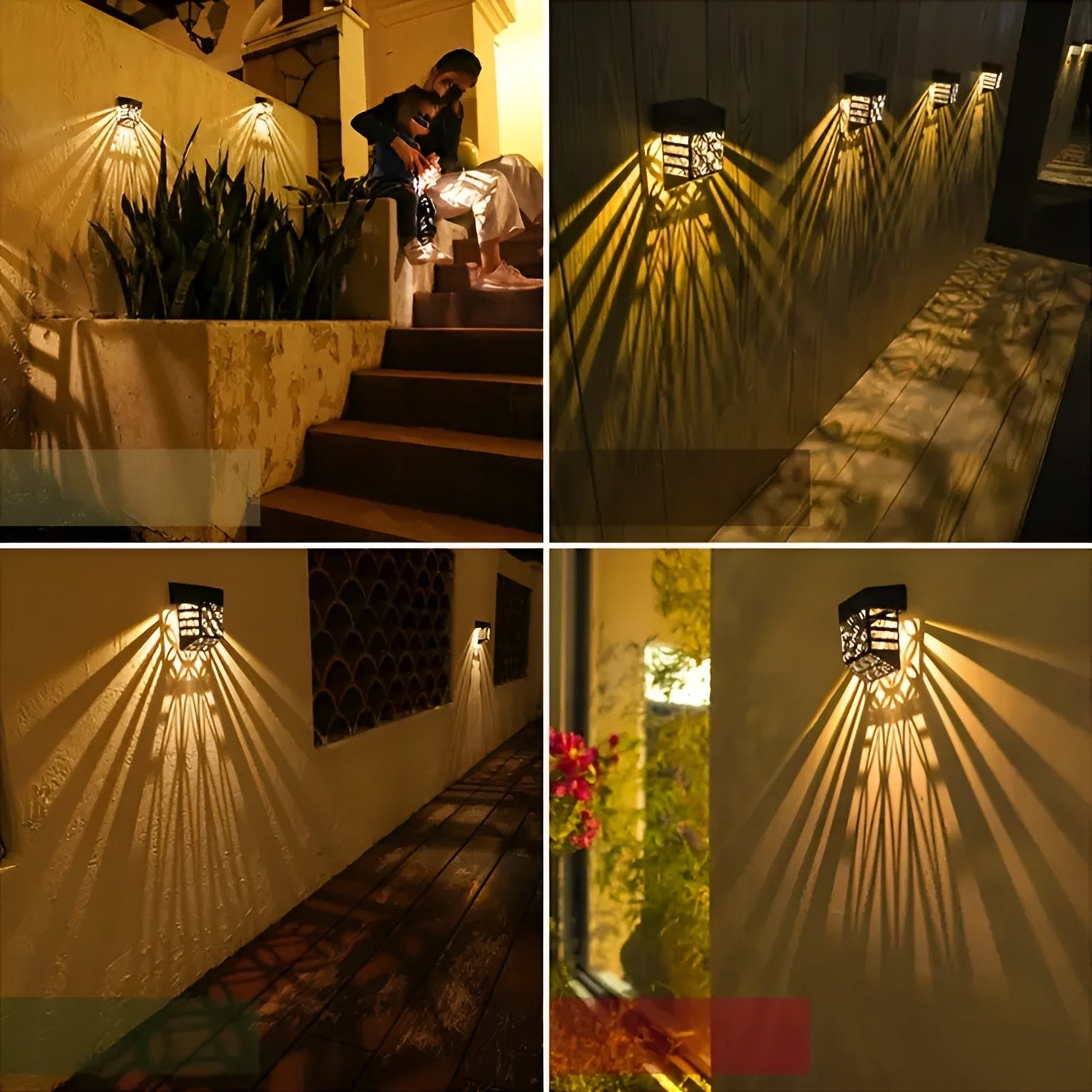 Solarlampor för vägg – | 2-pack/4-pack Set Hålmönster för atmosfärisk trädgårdsbelysning