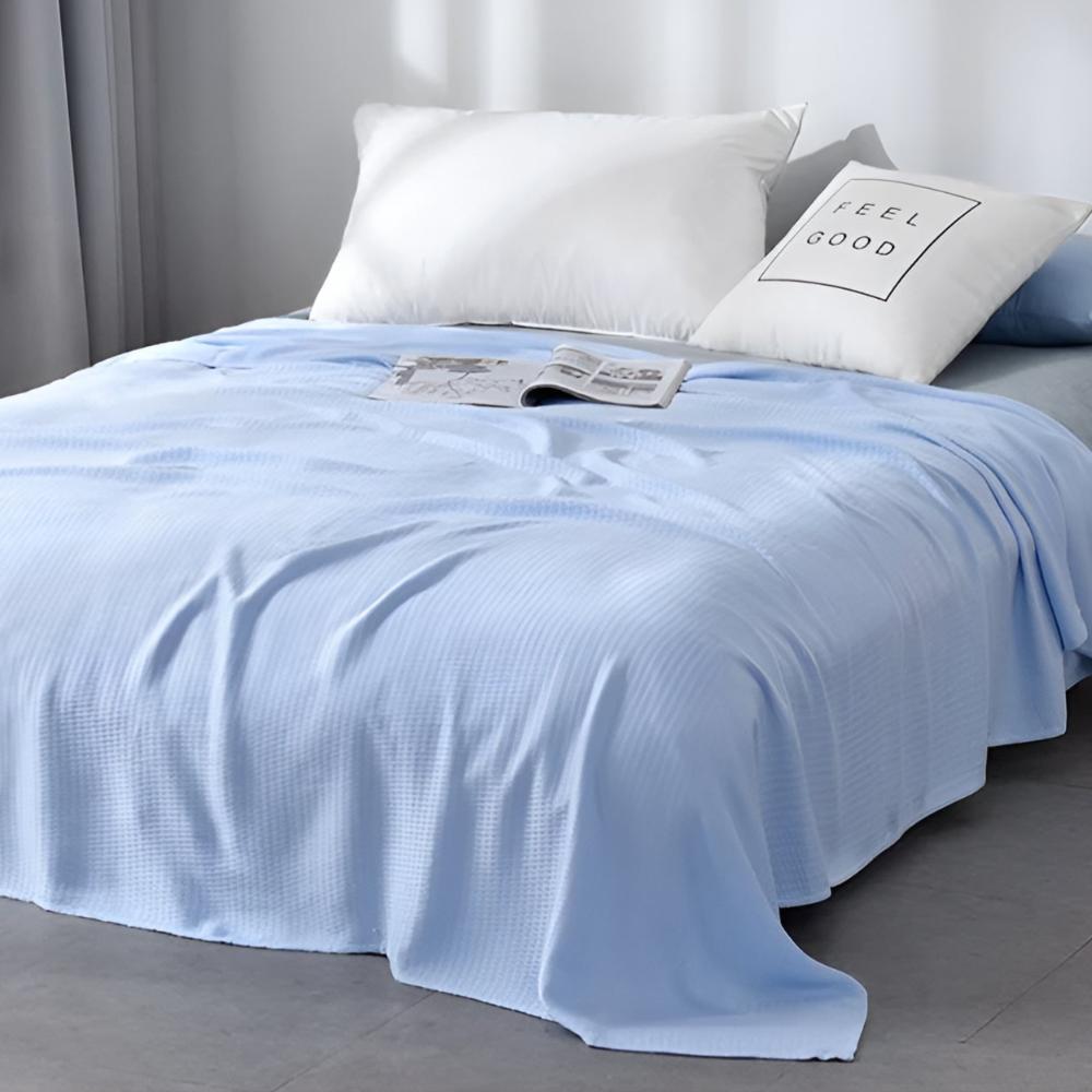 Summer Breeze Kylfilt är utformad för varma sovares, designad för att absorbera kroppsvärme och ge en uppfriskande, sval nattsömn. Lätt och tunn, den är perfekt för sommarens komfort och mångsidig nog att använda året runt som säng täcke, sofffilt eller resefilt.