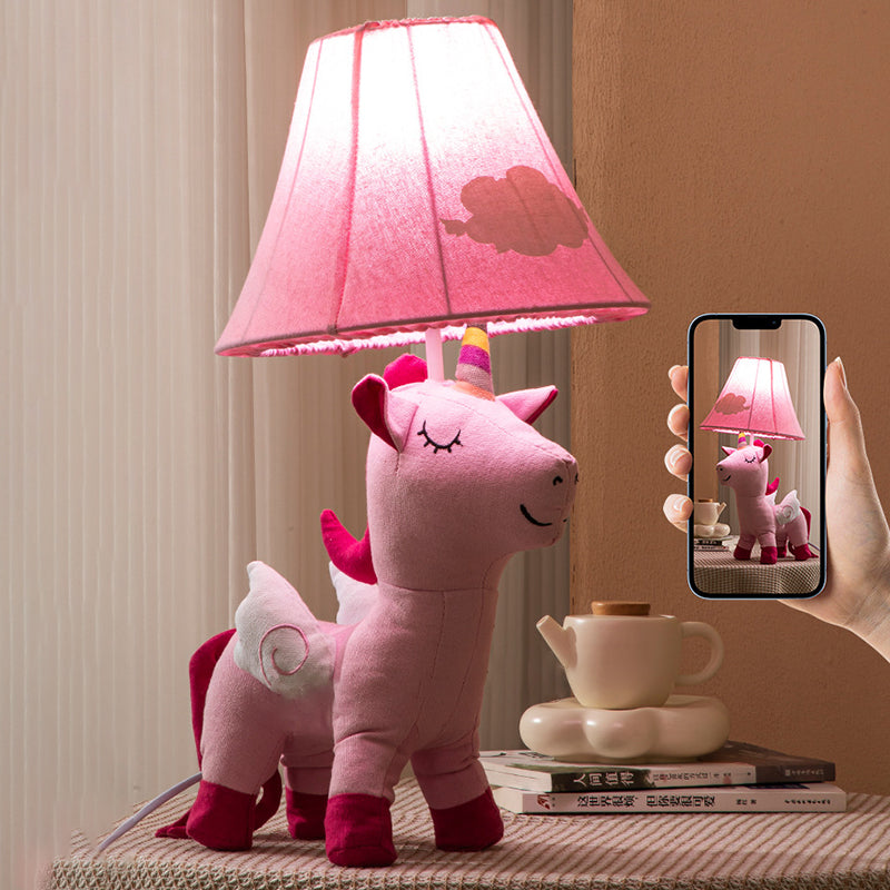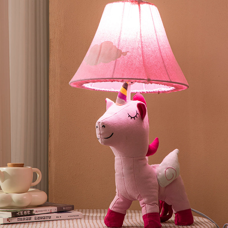 Förvandla ditt barns utrymme med denna nyckfulla enhörningsbordslampa, designad för att väcka fantasi och ge en varm, mysig glöd. Denna lampa har ett drömskt moln- och enhörningsmotiv och är tillverkad av högkvalitativt järn, harts och tyg för en mjuk men ändå hållbar finish. Perfekt för godnattsagor, lekstunder eller som en charmig inredning.