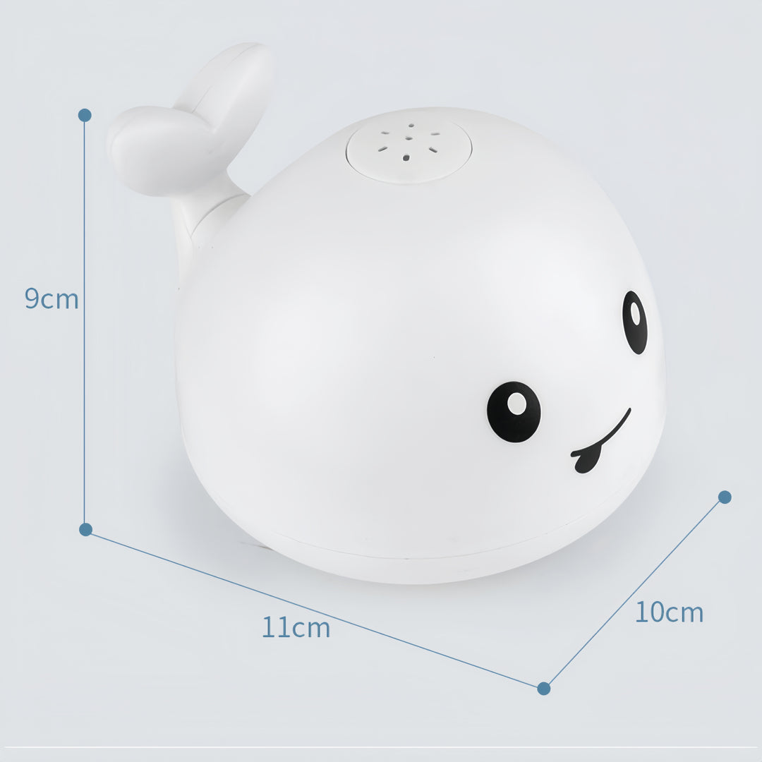 Denna charmiga valdesignade badleksak lägger till en stänk av kul till varje bad, med vatten som försiktigt sprutar från sin pip för oändlig njutning. De underbara, färgglada cirkulära lamporna lockar ditt barns uppmärksamhet, vilket gör badtiden ännu mer spännande.