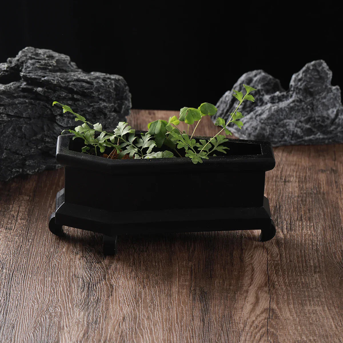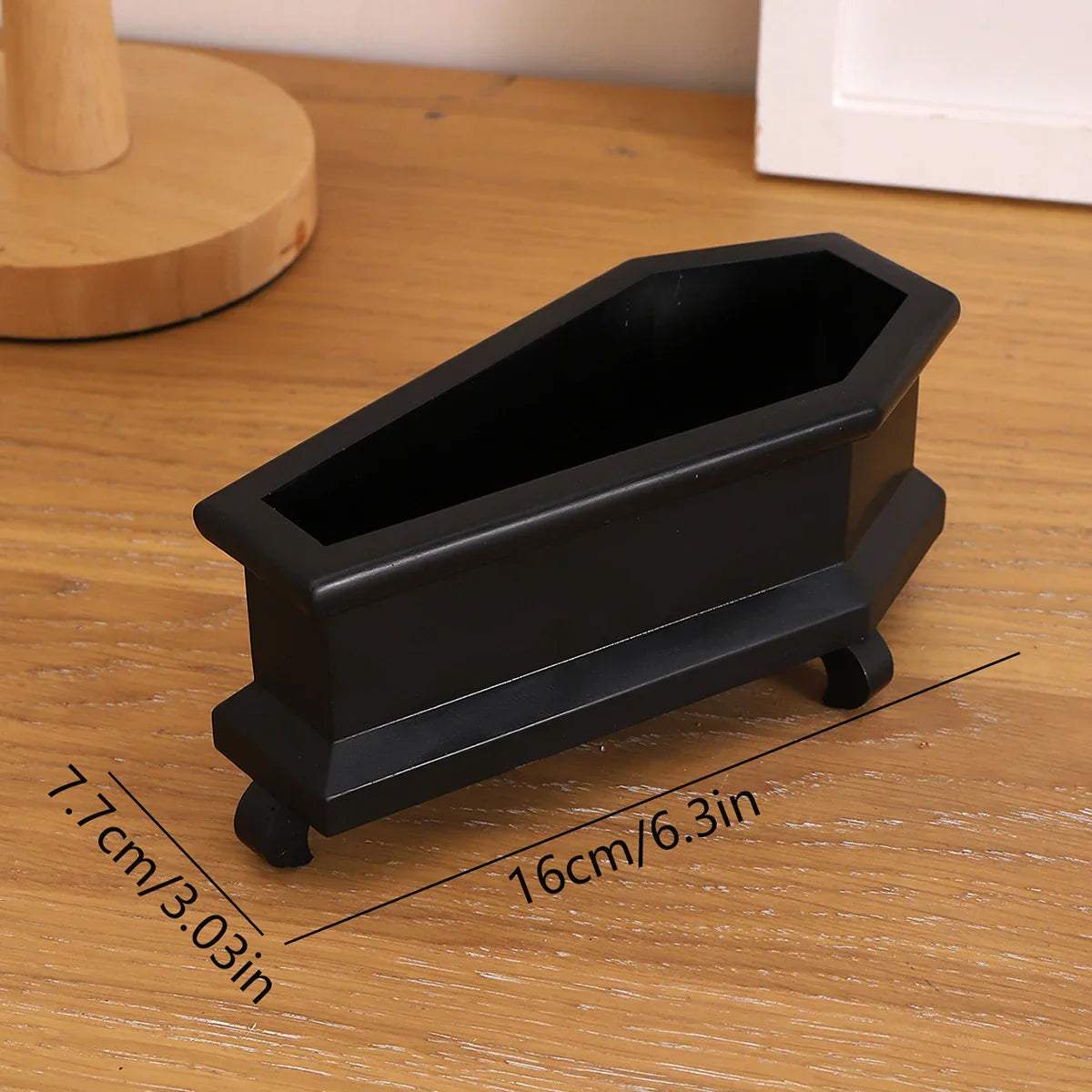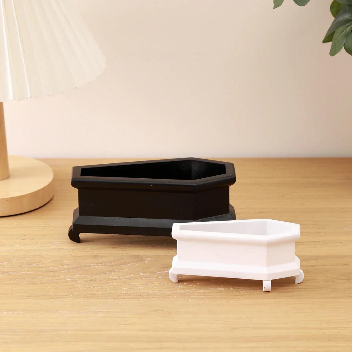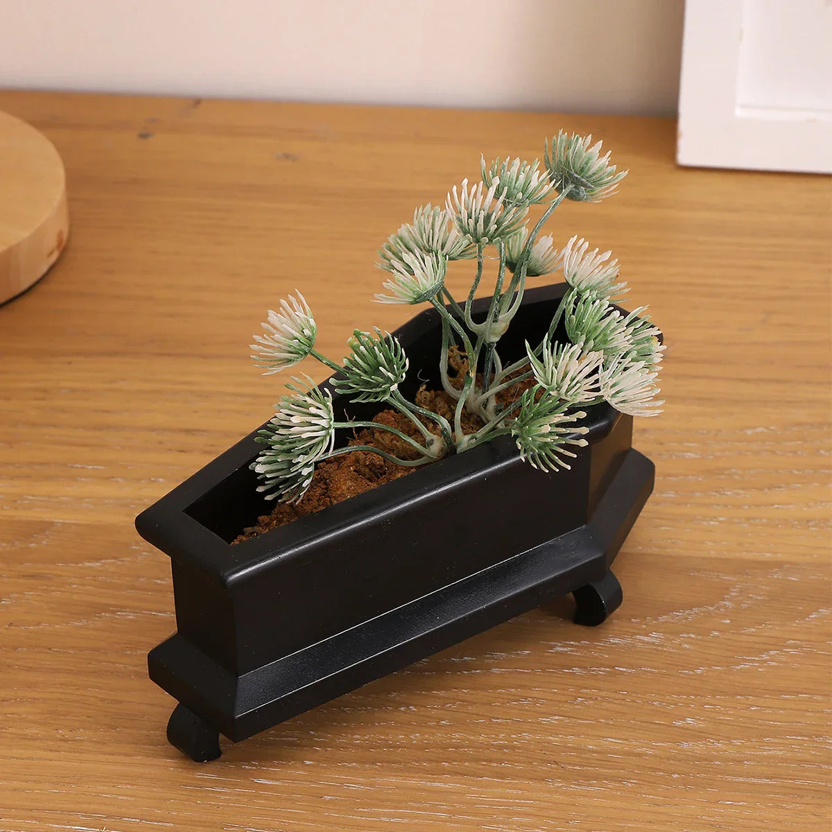Ge din inredning en touch av gotisk charm med den kusliga kistans kruka. Med en klassisk kista-silhuett är denna kruka den perfekta blandningen av kusligt och bedårande, vilket gör den till ett enastående föremål för ditt hem, kontor eller Halloween-inredning. Designad med små dräneringshål och lågprofilerade fötter säkerställer den en sund växttillväxt samtidigt som ytorna hålls rena och torra.