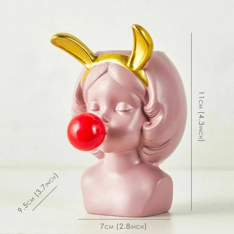 Söt Bubbelgum Flicka Keramisk Ansiktsvase för Leken Heminredning