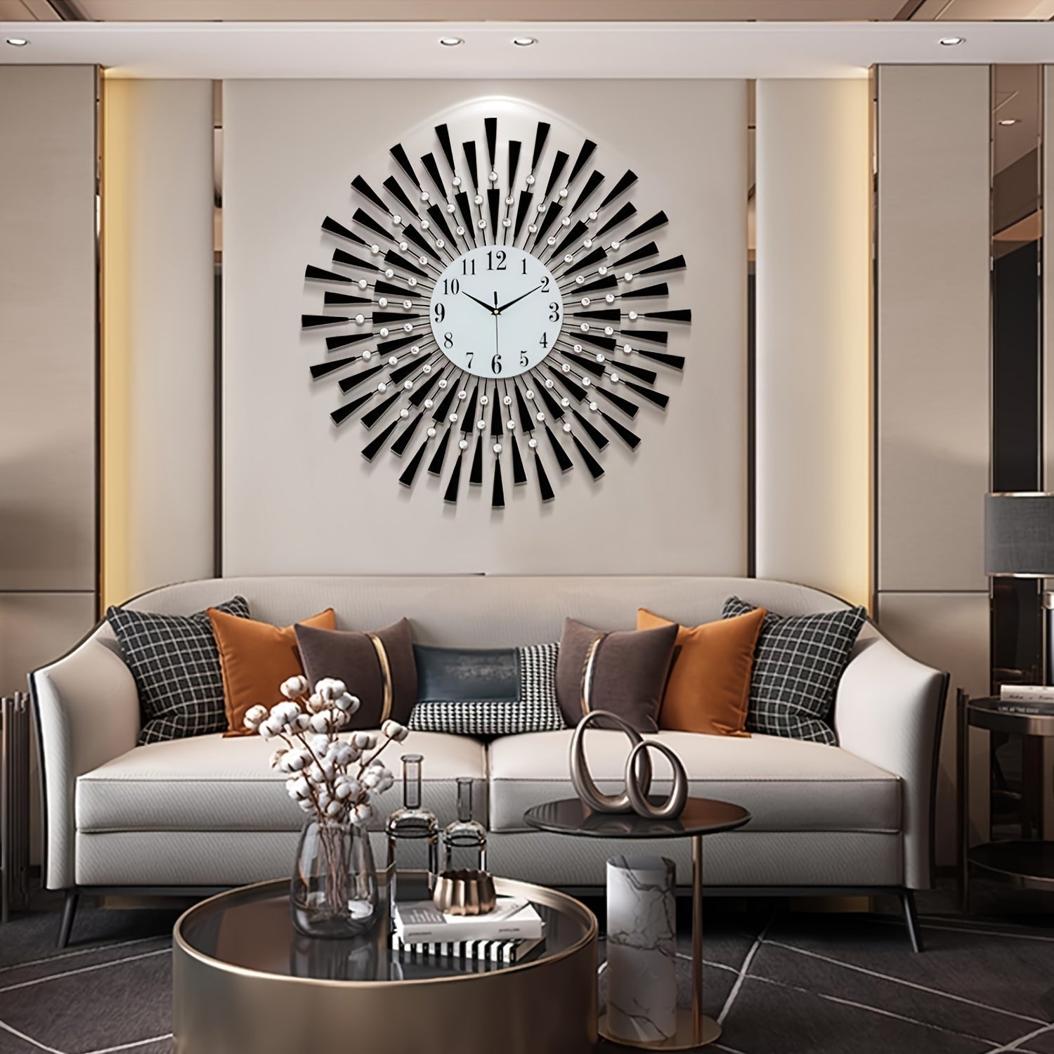 Stille Svart Metall Väggklocka med Glashand - Batteridriven för Vardagsrum, Sovrum, Kontor