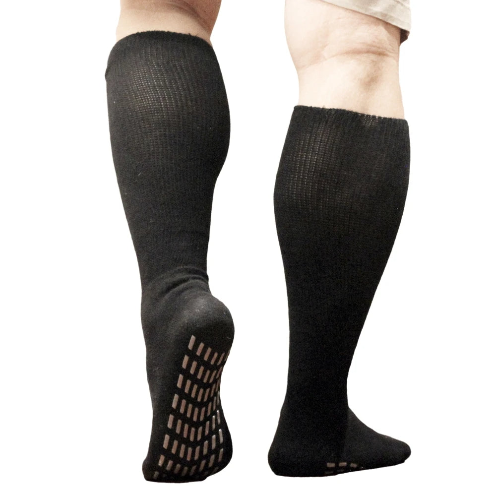 Våra extra breda diabetikerstrumpor är speciellt designade för att ge maximal komfort och stöd för personer som lider av diabetes, ödem eller svullna fötter. Strumporna är utformade för att förbättra blodcirkulationen och minska trycket på fötterna, vilket bidrar till att lindra smärta och minska risken för fotproblem. Med en halkfri design är dessa strumpor perfekta för både kvinnor och män som behöver en pålitlig lösning för sina svullna fötter.