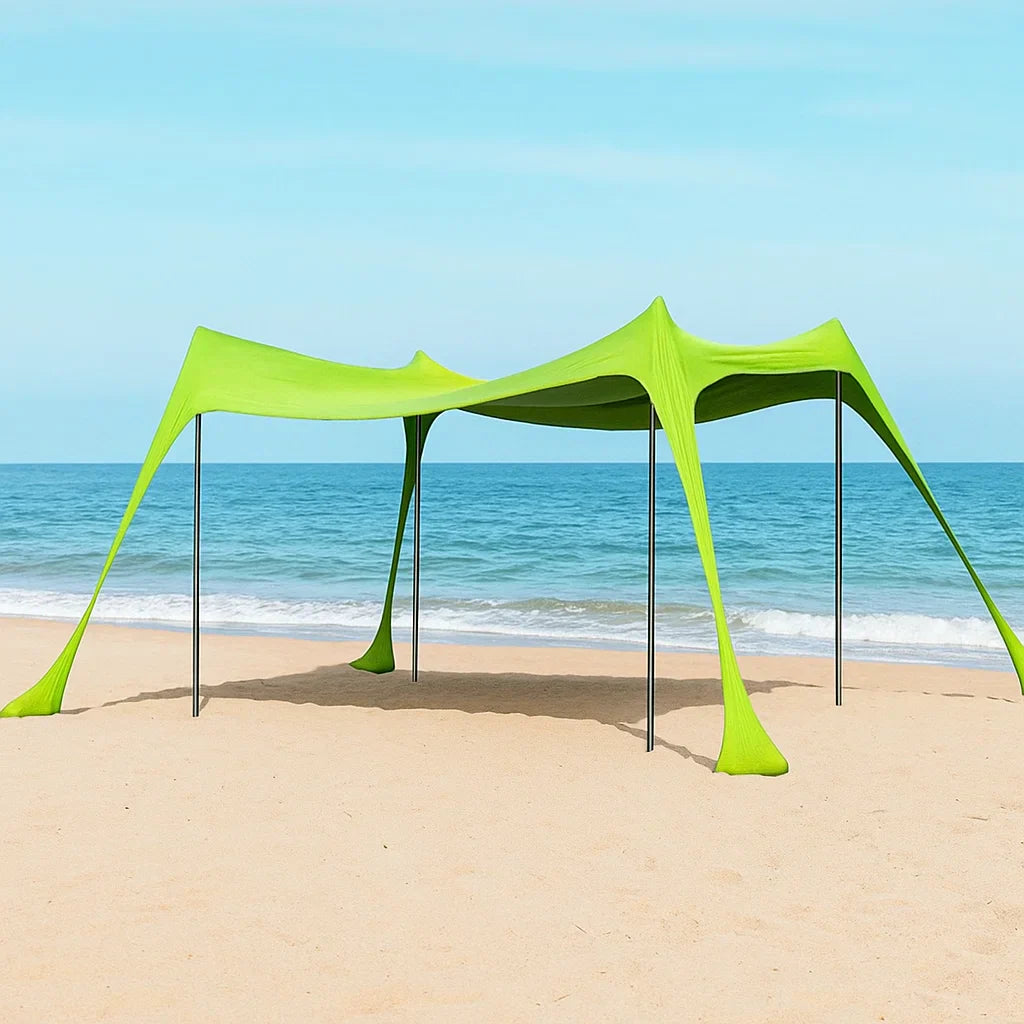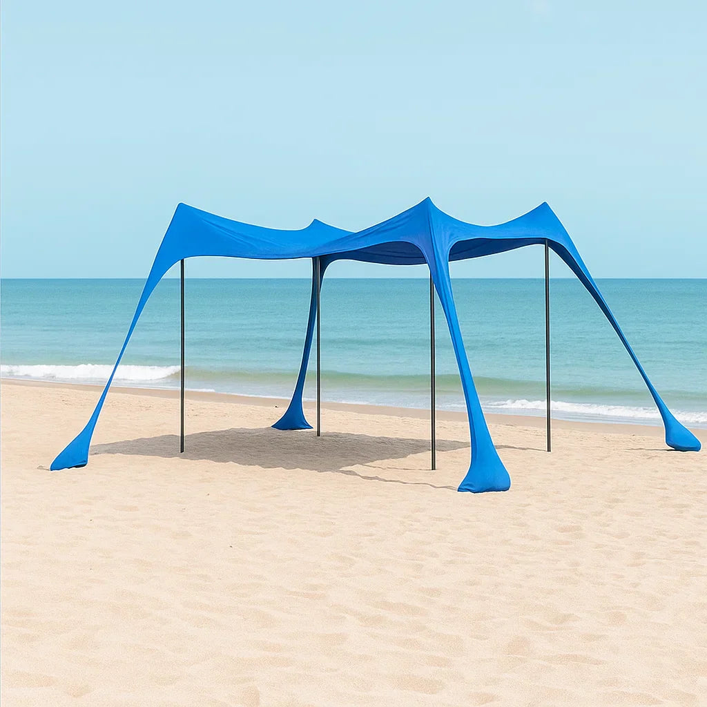 Njut av avkopplande dagar vid havet med vårt lätta och bärbara strandtält, perfekt för att skapa omedelbar skugga var du än går. Oavsett om du är på väg till stranden, campar eller njuter av en dag utomhus, ger detta mångsidiga soltak snabb och enkel skydd. Tillverkat av slitstark polyesterduk och en robust stålram, är det designat för enkel uppsättning och nedtagning — inga komplicerade instruktioner eller verktyg behövs.