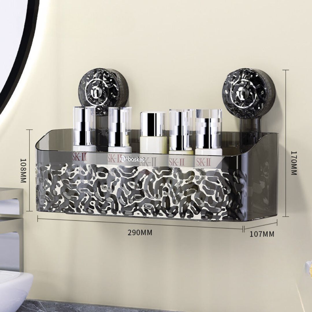 Sugkopp hyllan är flexibel och kan enkelt omplaceras när som helst utan att lämna spår. Perfekt för små eller stora badrum, erbjuder den en smart förvaringslösning som är både praktisk och estetiskt tilltalande.
