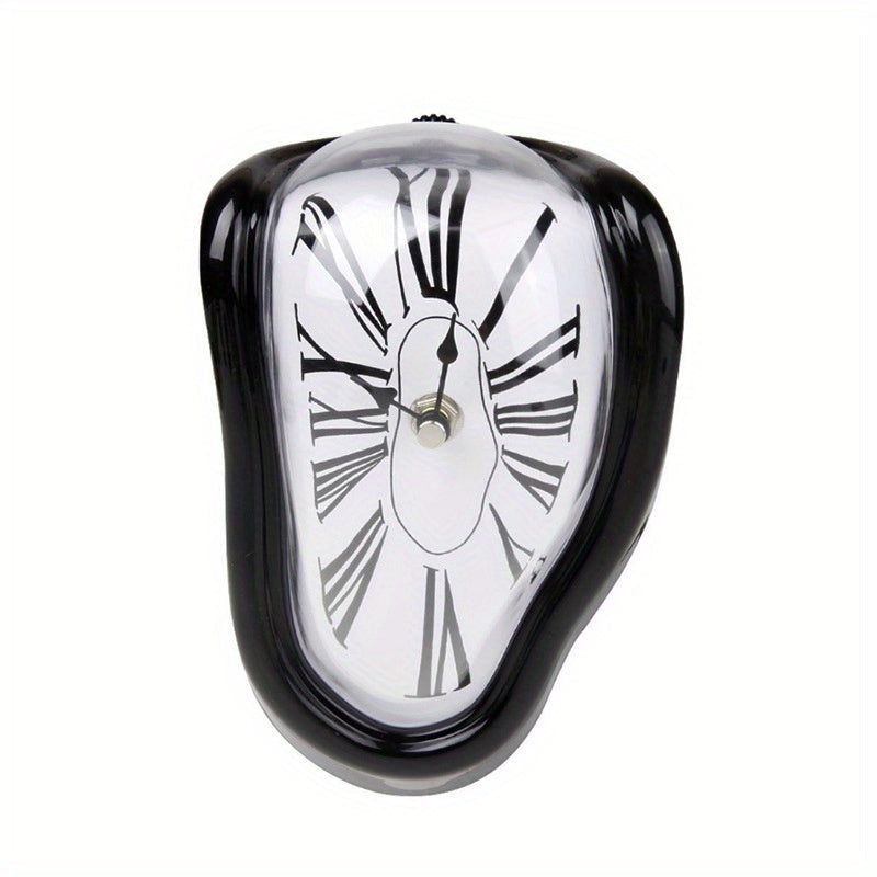 För att skapa en touch av konst och kreativitet i ditt hem, välj denna surrealistiska väggklocka. Dess böjda design med förvrängda romerska siffror ger ditt rum en unik och modern känsla. Perfekt som en iögonfallande accessoar i ditt vardagsrum, kontor eller sovrum. Denna tysta klocka drivs av ett AA-batteri och tillför en touch av surrealistisk konst till varje inredning.