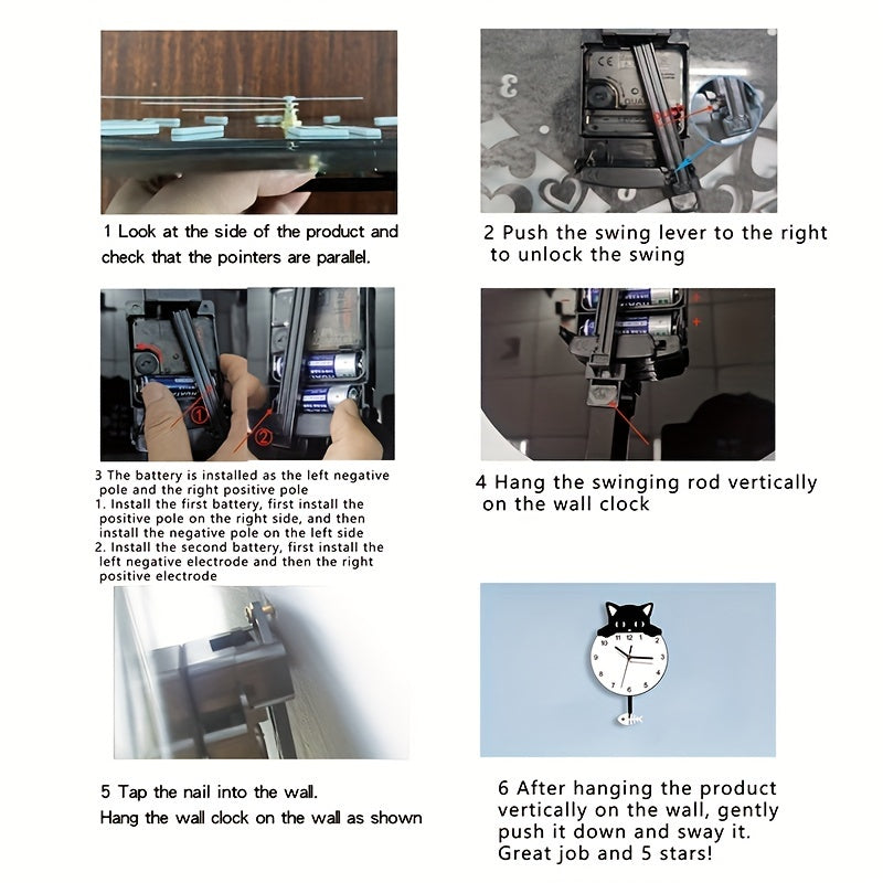 SwingCat Väggklocka från WANTIFO ger en lekfull och kreativ känsla i ditt hem. Med en unik design av en svajande katt och en ljudlös mekanism är denna klocka perfekt för vardagsrummet, köket, sovrummet eller kontoret. En modern tillägg till din heminredning.