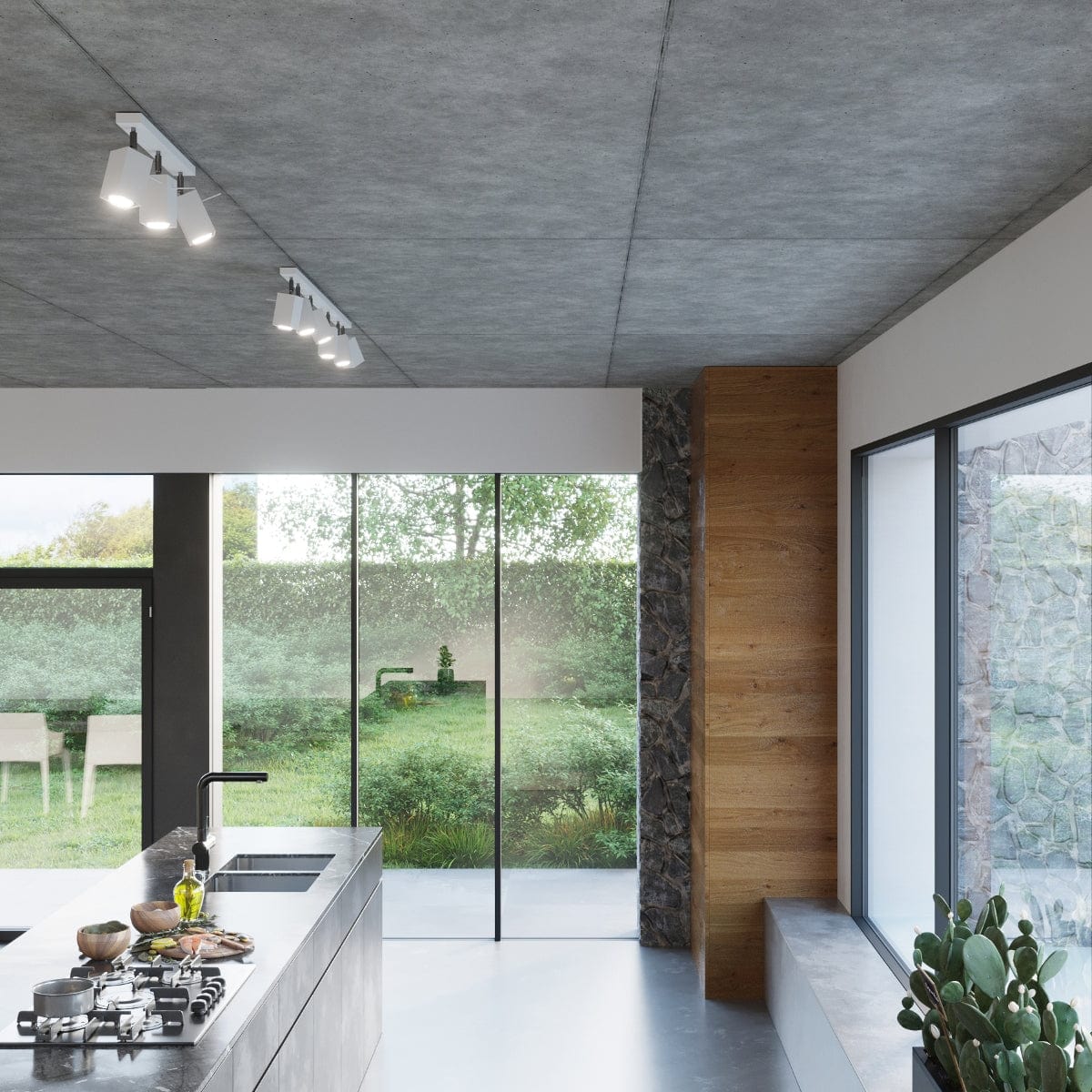Du bestämmer hur mycket ljus du behöver. Den moderna Merida spot taklampan finns i fem varianter: med två, tre, fyra eller sex spotlights arrangerade linjärt, eller fyra i en kvadratisk plan.