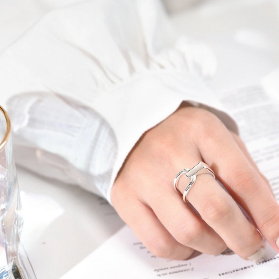 Thira™ Överlappande Ring kombinerar enkel elegans med en djärv geometrisk design och skapar en slående accessoar för alla tillfällen. Tillverkad med miljövänliga material är den det perfekta tillskottet till varje smyckeskollektion och erbjuder både stil och sinnesfrid.