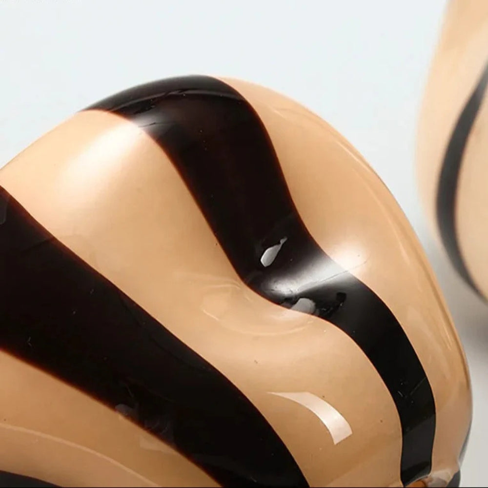 Lägg till en unik designstil i ditt utrymme med Thurid Glass Striped Pumpkin Vase. Dess skulpturala pumpasiluett och djärva ränder gör den till en framträdande inredningsdetalj. Perfekt för att visa upp färska blommor, torkade stjälkar eller till och med minimalistiska hydroponiska utställningar—denna vas förenar modern konst med vardaglig funktion.