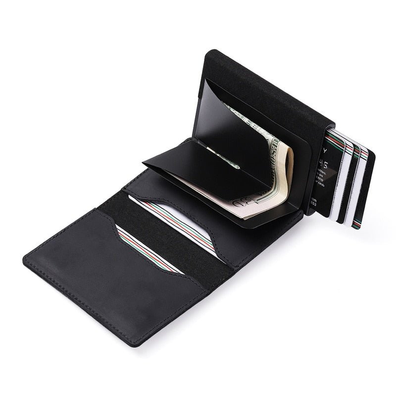 Världens säkraste plånbok. Alla kort som lagras i aluminiumskyddsskalet är skyddade med den mest avancerade RFID-blockeringstekniken som finns.