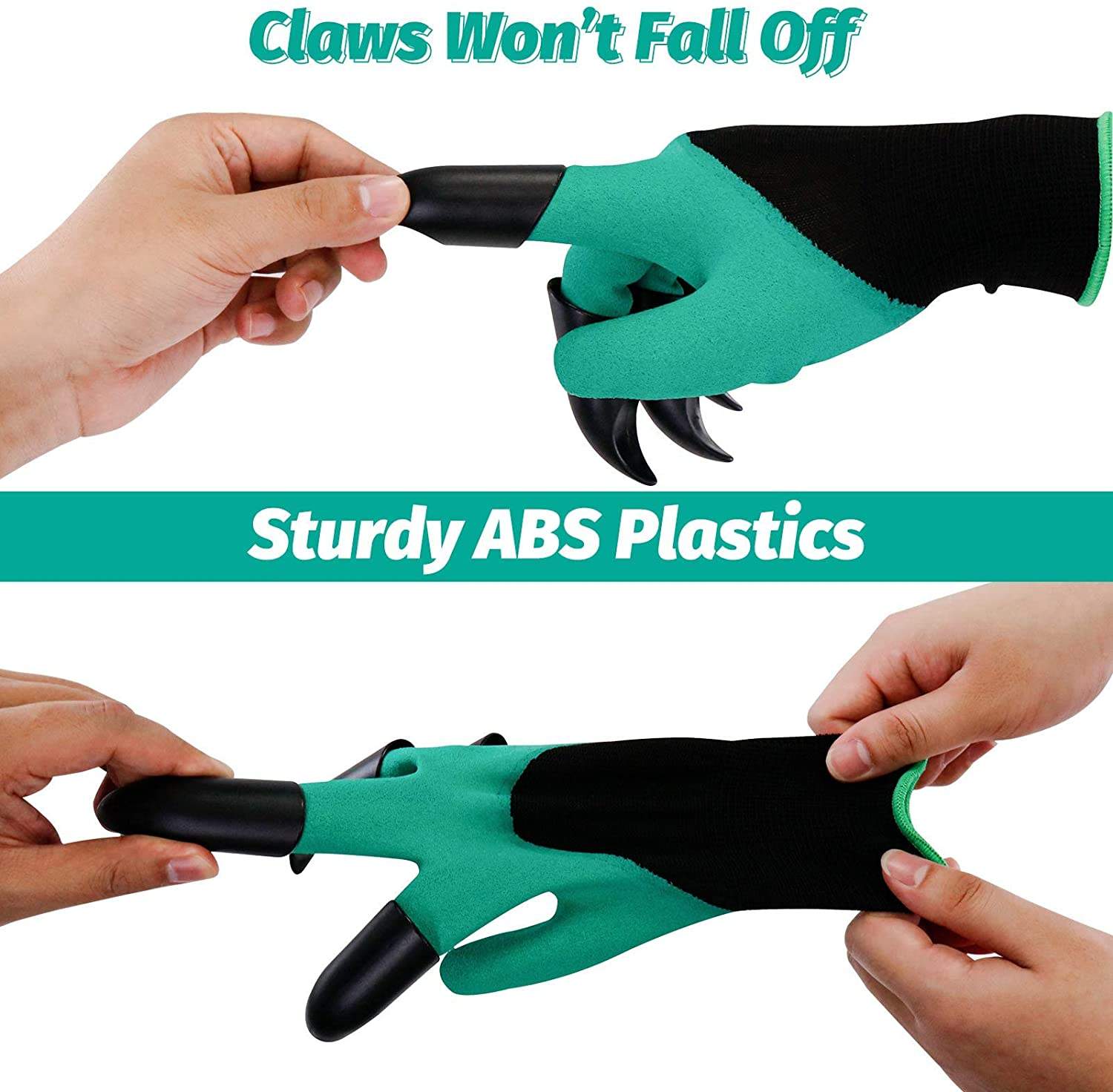 Ska du göra trädgårdsarbeten inför våren? Med våra praktiska trädgårdshandskar med klor blir jobbet både lättare och roligare! Med fyra grävklon på ena handsken kan du enkelt gräva och kratta i jorden utan att använda andra verktyg. Handskarna är tillverkade av slitstarkt och vattenavvisande material, vilket gör att du kan arbeta utan att oroa dig för smutsiga eller våta händer. Den praktiska designen inte bara effektiviserar trädgårdsarbetet utan ger även ett skydd mot smuts och skador, tack vare det slitstarka materialet. Skydda dina händer medan du arbetar i trädgården med dessa praktiska trädgårdshandskar!
