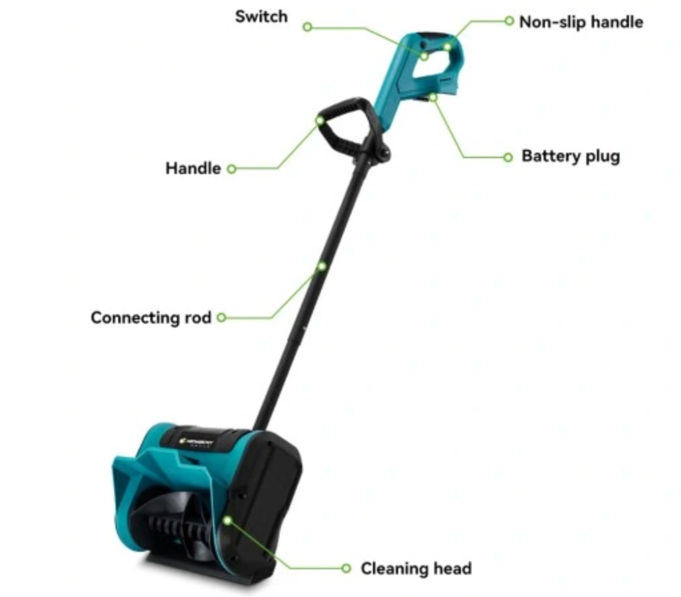 Den trådlösa snöskoveln är idealisk för att ta bort snö från uppfarter, gångvägar, däck, terrasser och mer. Oavsett om snön är lätt eller tung anpassar den sig efter dina behov och ger en ren och säker omgivning.