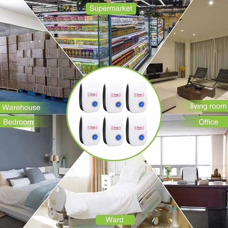 Vår elektroniska skadedjursavskräckare avskräcker oinbjudna gäster som råttor, fladdermöss, myggor, kackerlackor och spindlar utan kemikalier, strålning eller giftiga lukter, 100 % miljövänlig och säker för människor och husdjur.